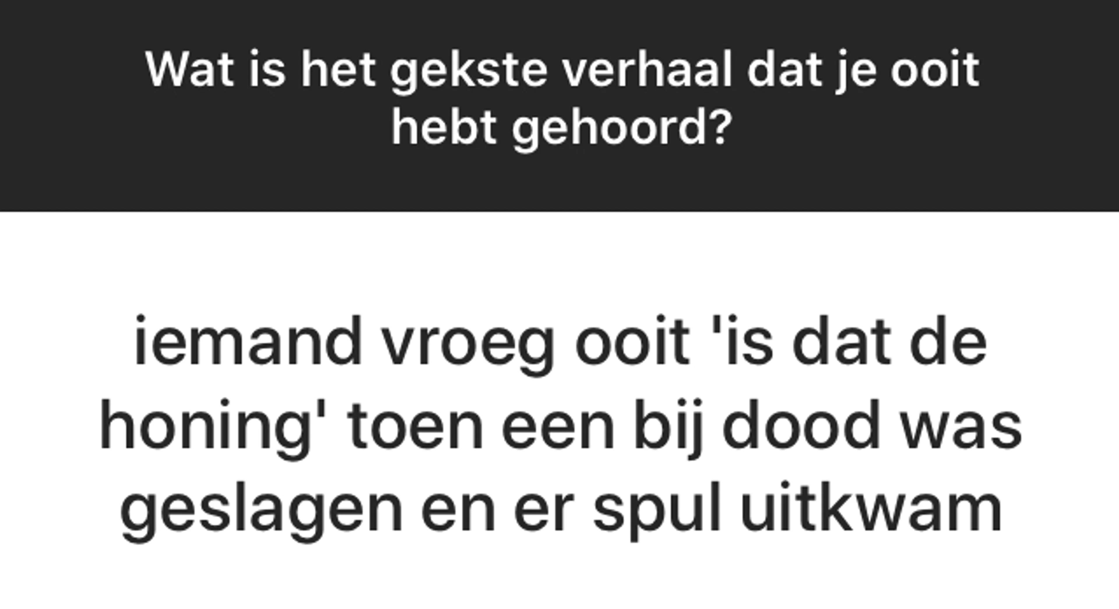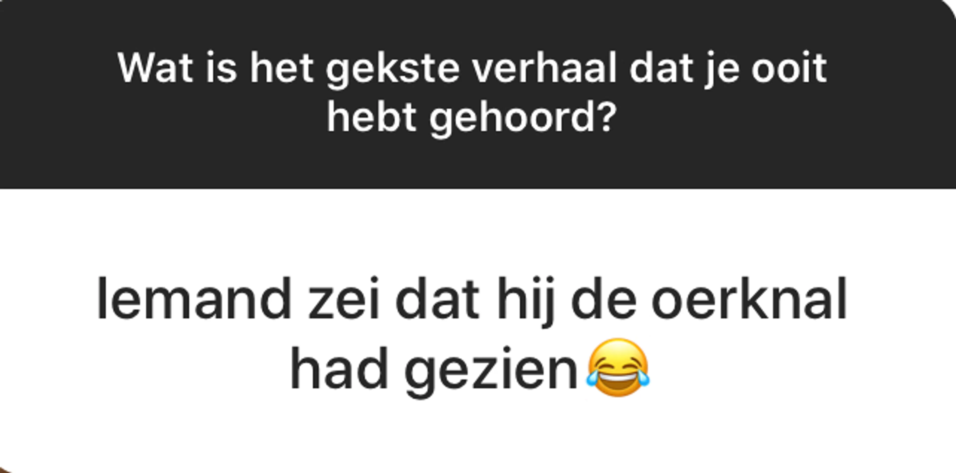 BEAM is een fantastische community met duizenden jongeren die allerlei geniale, moeilijke, mooie en soms niet normaal grappige dingen meemaken. Elke week stellen wij onze volgers via ons Instagram-account (@EOBEAM) een vraag en delen we de meest opvallende antwoorden met jou. Deze week: 'Wat is het gekste verhaal dat je ooit hebt gehoord?'