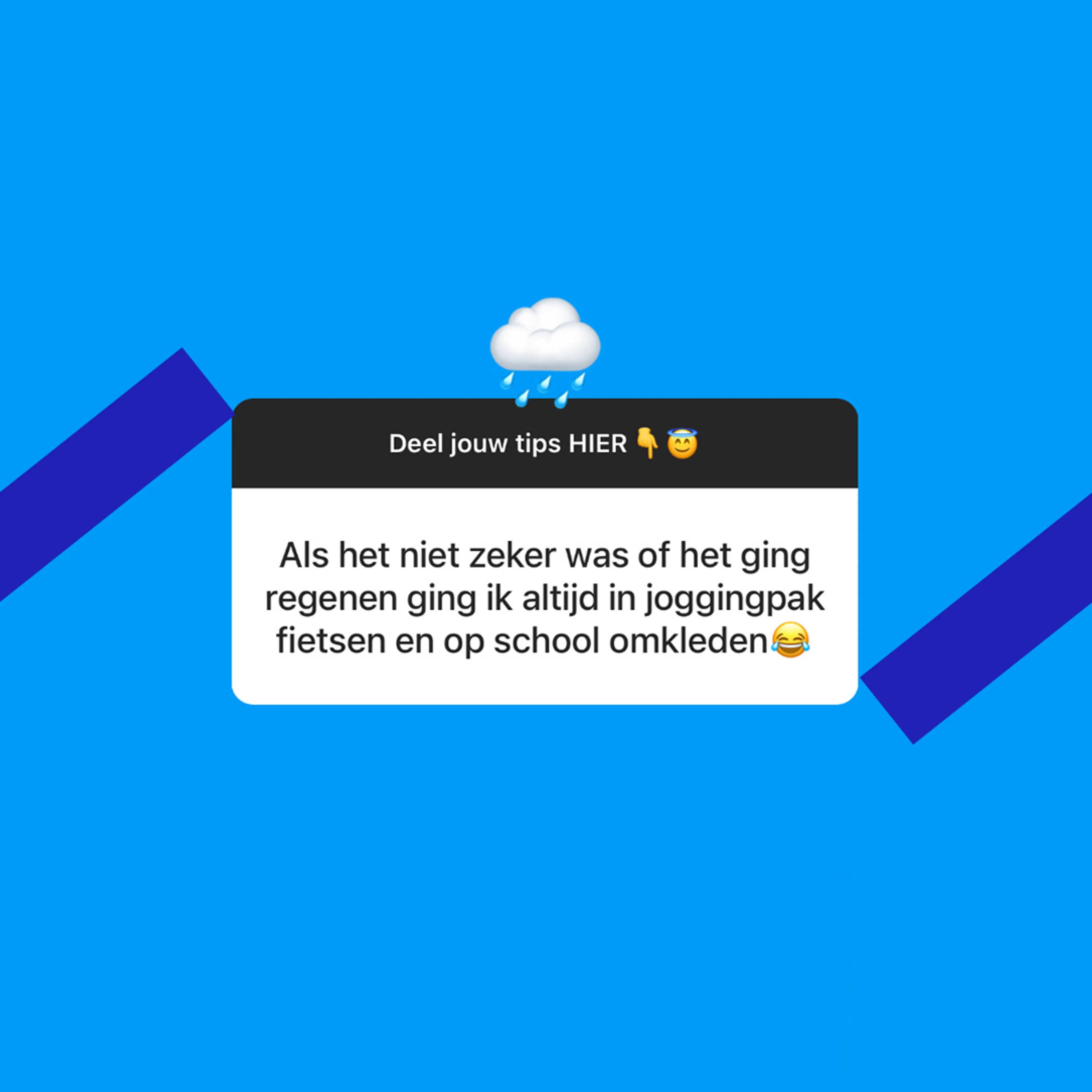 Nederland is een echt regenlandje! Goed voor de tuin, maar niet zo leuk als jij op de fiets zit naar school. Een regenpak? Ja doei, je hebt ook een imago he! Jij bent liever de hele dag koud en chagrijnig dan dat je voor schut moet lopen in een regenpak. Dus de kans dat je een keer kletsnat regent, is vrij groot. Wat dan? Wij vroegen jullie om de beste tips en die lees je hier!