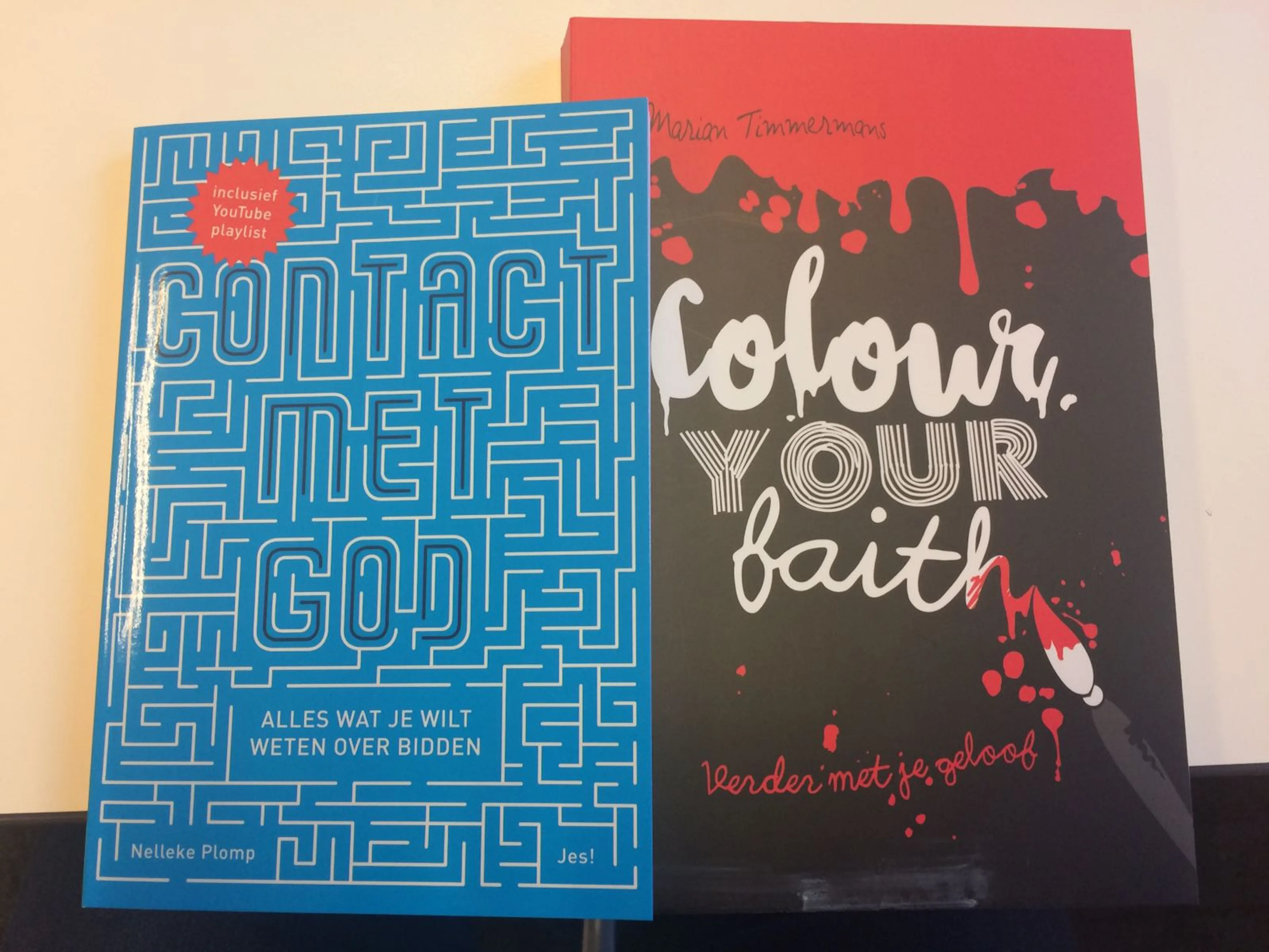 'Colour your faith' van Marian Timmermans is een creatief boek met invulopdrachten, notitiepagina's en nieuwe manieren om Bijbel te lezen. 'Contact met God' van Nelleke Plomp vertelt je alles wat je wil weten over bidden. Er zit zelfs een test in wat voor bidder jij bent.