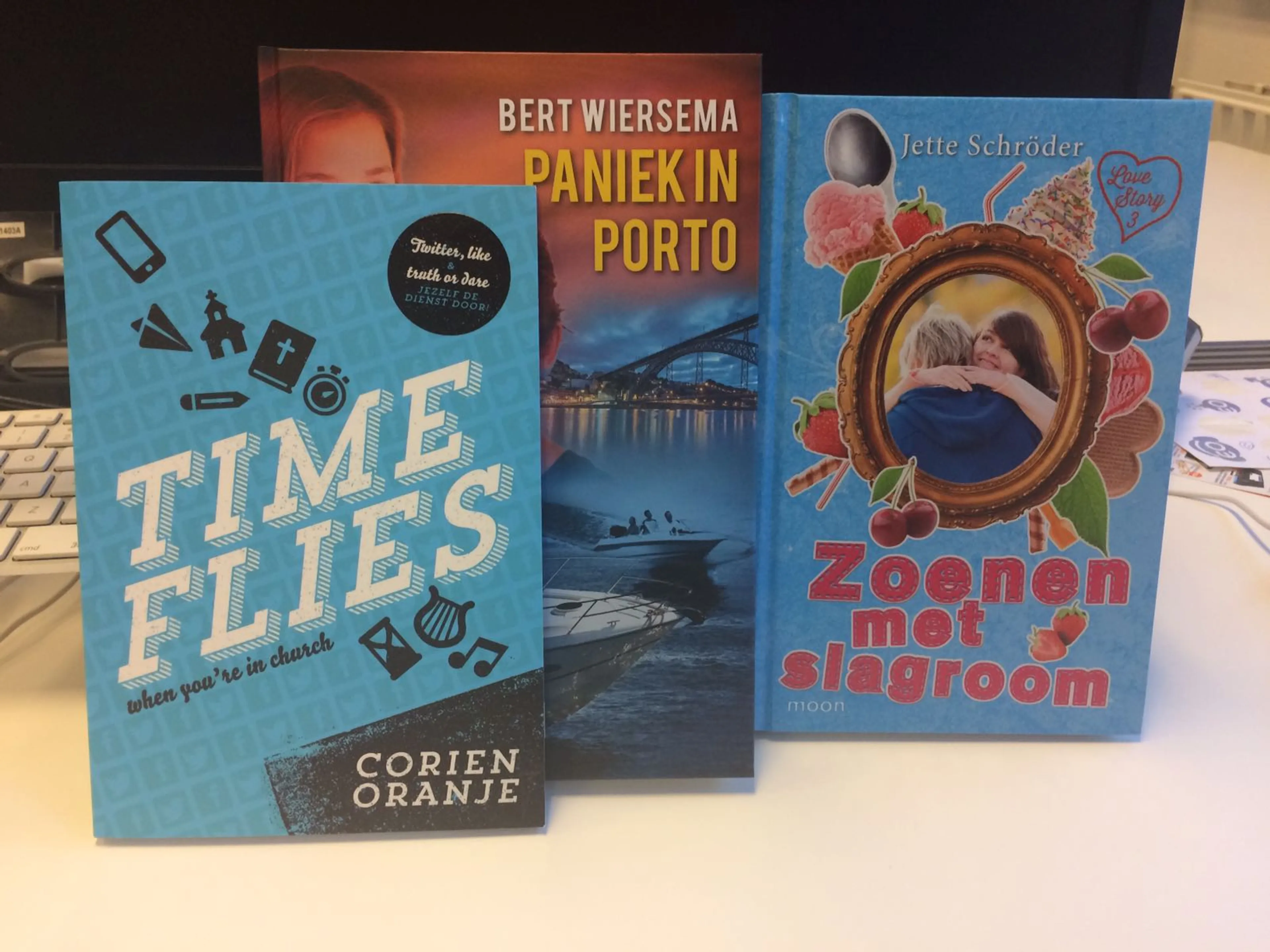 Dit pakket bevat het spannende boek 'Paniek in Porto' van Bert Wiersema, het meidenboek 'Zoenen met Slagroom' van Jette Schröder en het handige boekje 'Time Flies' van Corien Oranje. Dit laatste boekje zorgt ervoor dat je je tijdens een kerkdienst nooit meer verveelt.