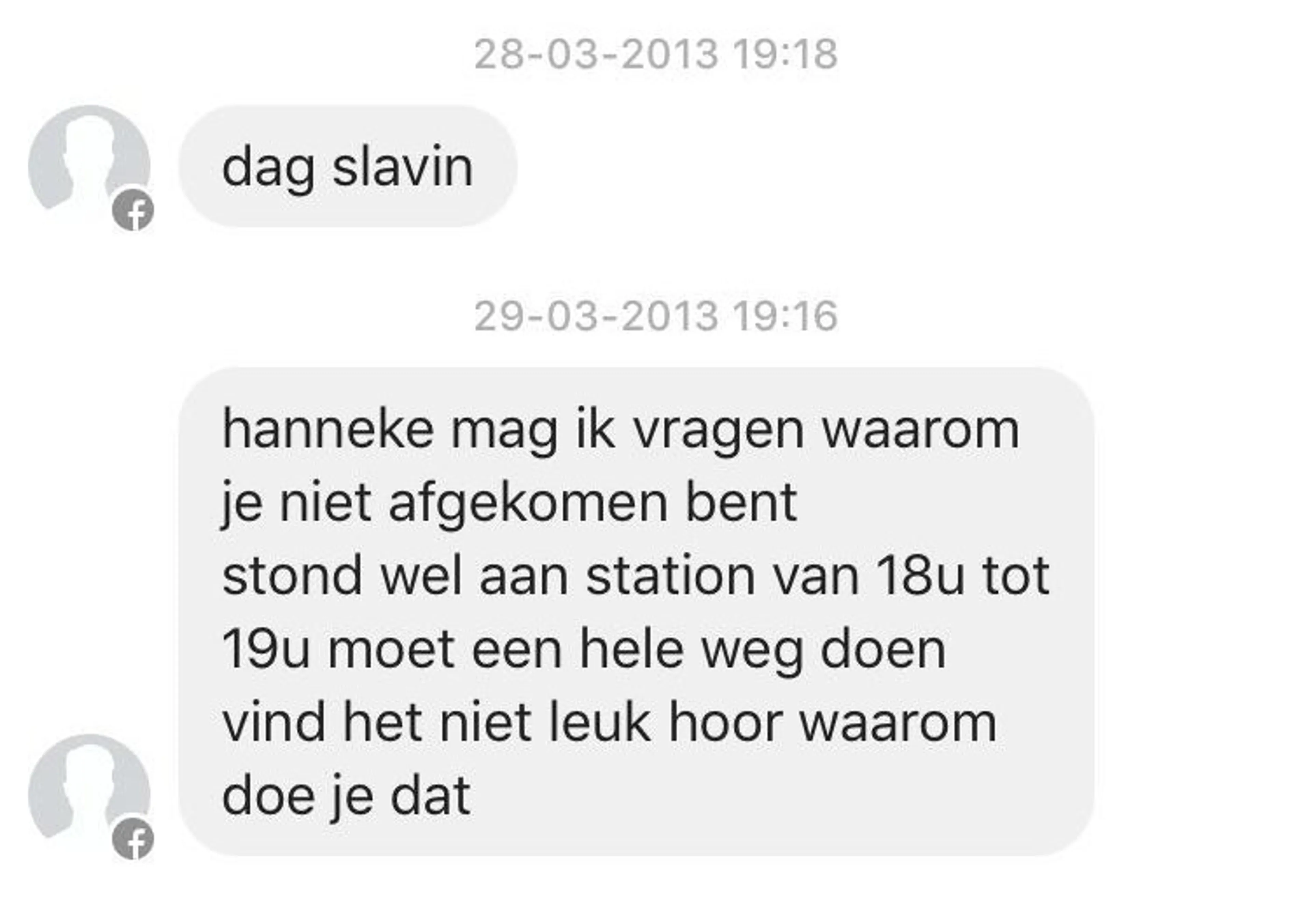 Ik kreeg steeds meer berichtjes van onbekende mannen. ‘Hé slavin, waar was je?’, ‘Ik heb je gemist op MSN, dus daarom gaan we hier maar verder.’ en ‘Ik heb twee uur gereisd om je te zien en drie uur op je gewacht op het station. Waar was je?’. Soms waren ze heel persoonlijk. Begon zo’n man over mijn vriend of woonplaats: ‘Ik pak je in het bos’.