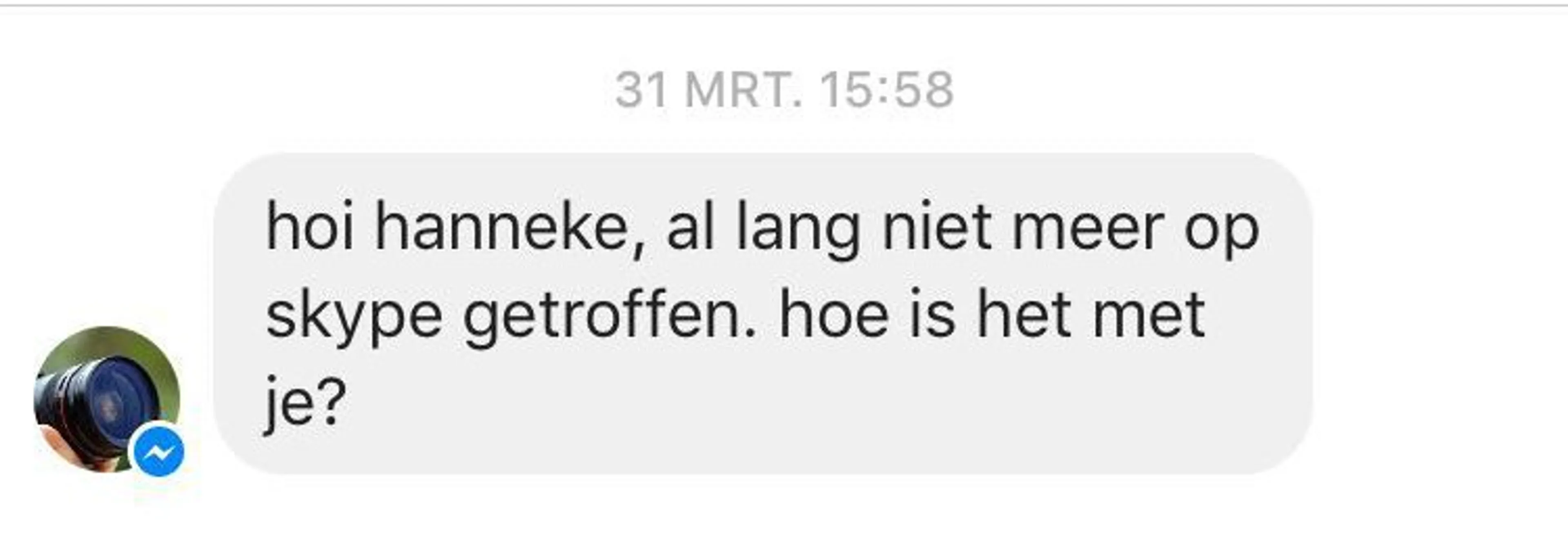 Er was ook een man die mij via Twitter, Facebook en mail berichtjes stuurde. Toen ik hem op al die kanalen had geblokkeerd, kreeg ik plots een bericht via het Facebookaccount van zijn vrouw. Ik heb in die chat gezegd dat hij op moest houden. Vervolgens antwoordde zijn vrouw helemaal boos wie ik was en wat ik van haar man wilde…