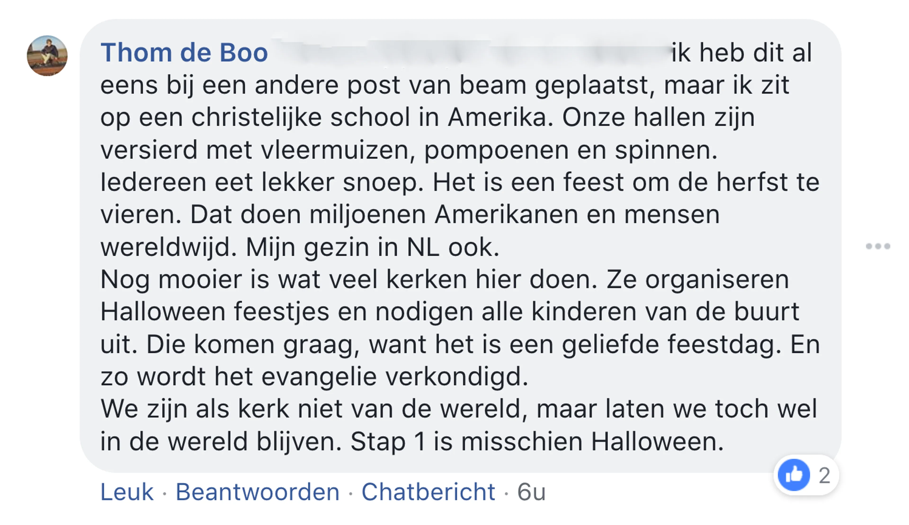 Een jaar geleden deelde BEAM een artikel over Halloween, inmiddels is dit anti-Halloweenartikel al 200.000x gelezen en verbazingwekkend vaak gedeeld. Volgens veel christenen zou Halloween verboden moeten worden en er is zelfs een petitie gestart. Om de andere, niet-negatieve kant van dit griezelfeest te belichten vroegen we verschillende theologen er iets over te schrijven, maar niemand durfde dat. Uit angst voor de veroordeling. Christenen zijn nog banger voor Halloween dan mensen voor nepmonstersā¦