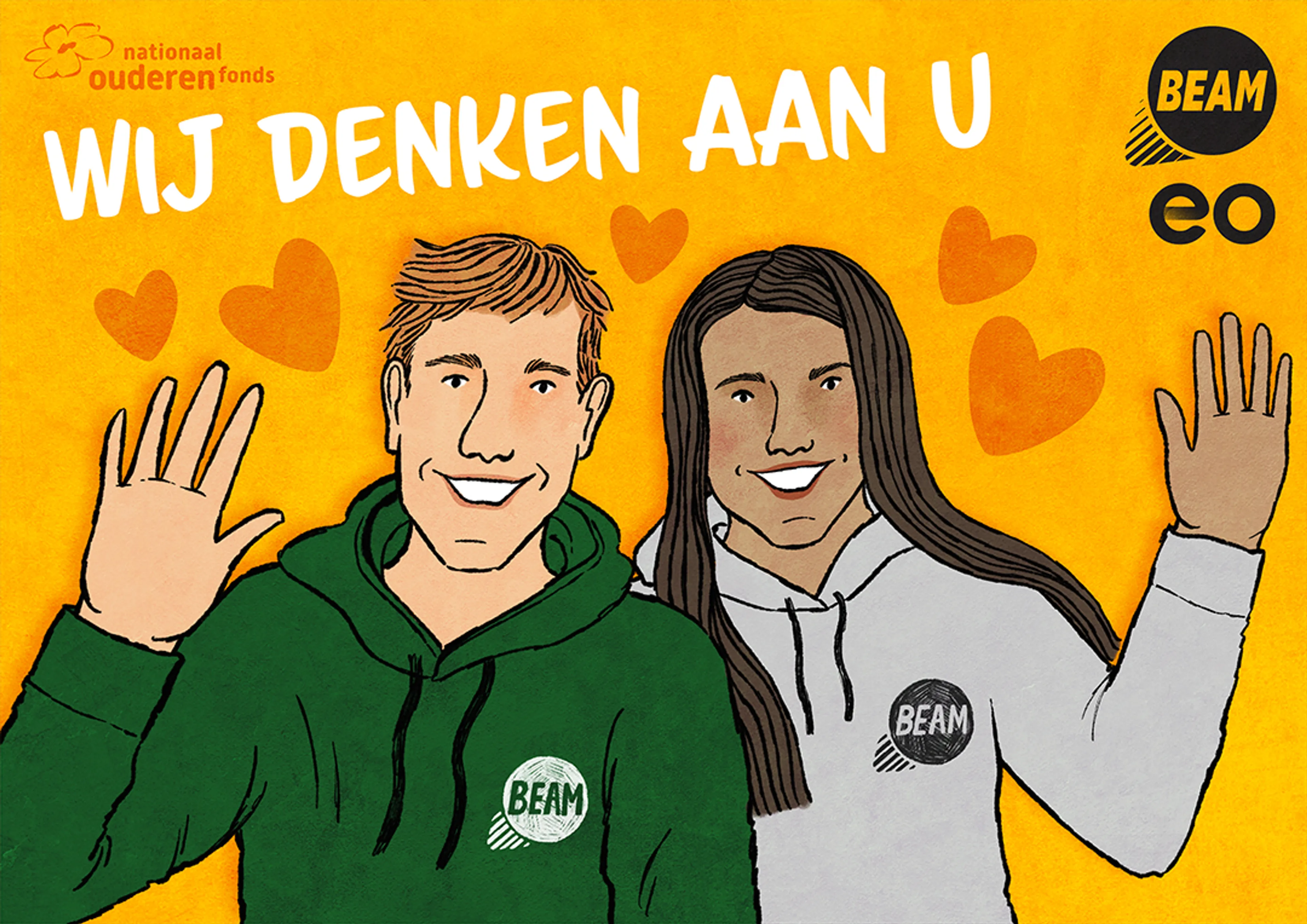 Heb je in de buurt geen brievenbus kunnen vinden of geen tijd om een kaartje in de winkel te kopen? Geen stress! Er zijn genoeg websites waar jij je kaartje kan laten uitprinten en versturen. Om je op weg te helpen, hebben wij alvast twee leuke kaartjes ontworpen. Klik op de kaartjes om ze te downloaden. Ga vervolgens naar websites als Greetz, Hallmark of Kaartje2go en upload ons BEAM-ontwerp als foto-kaart.