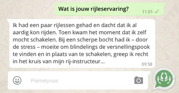 Als jij in zo’n situatie zit of hebt gezeten: deel het met mensen die je vertrouwt. En ook al is het financieel niet fijn en soms zelfs onhandig, stop alsjeblieft met rijden bij deze instructeur als je je onveilig voelt. Je kan ALTIJD switchen van rijschool. Jouw veiligheid is belangrijker dan zo snel en goedkoop mogelijk je rijbewijs halen.
