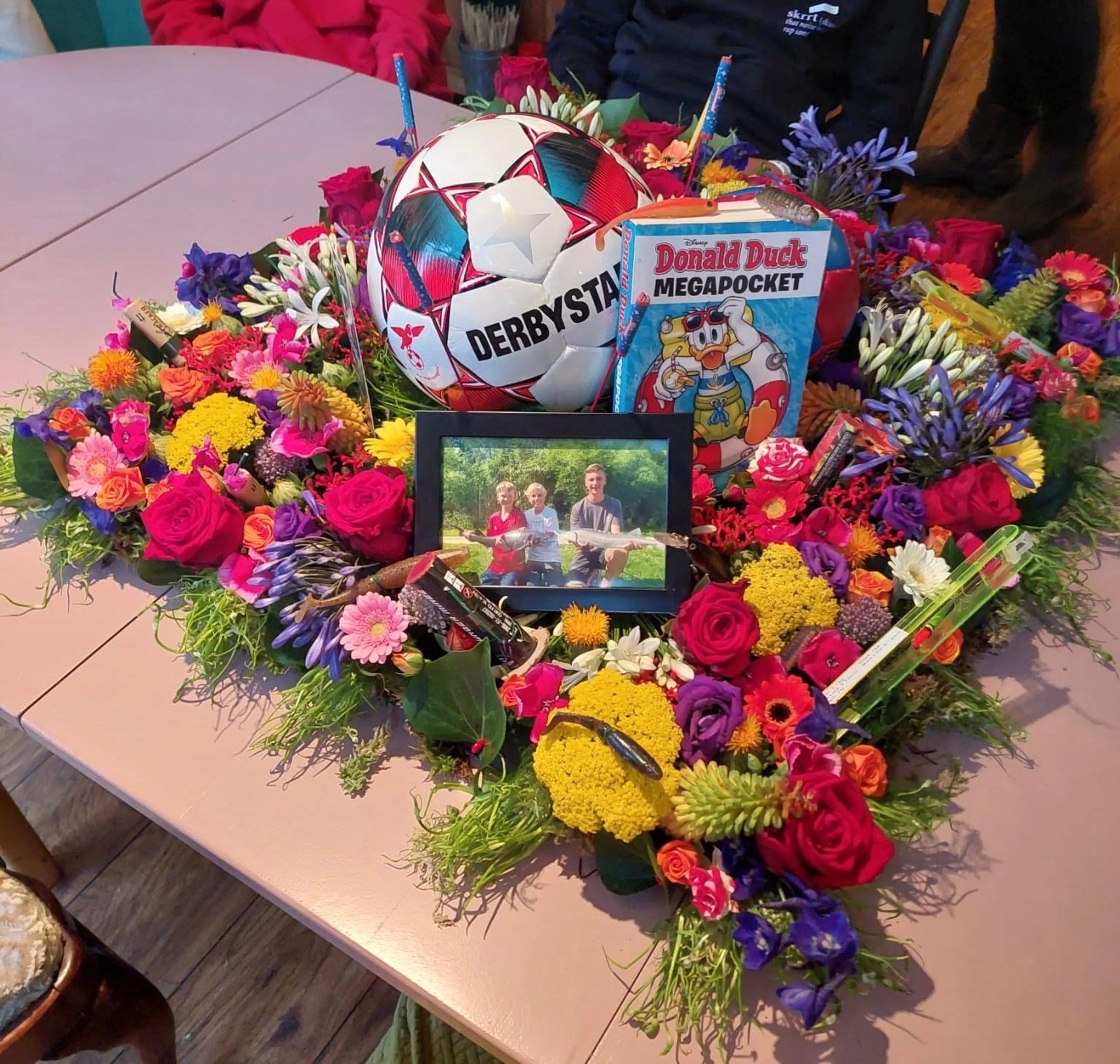 ‘Met alle vrienden hebben we voor de begrafenis een bloemstuk gemaakt. Daarin hebben we allemaal typische Nout-dingen verwerkt: een dobber, een voetbal en een vuurpijltje bijvoorbeeld. Een paar jongens wilden ook nog iets zeggen op de begrafenis van Nout. Ik ook. Op het laatste moment heb ik een gedicht geschreven waarin veel herinneringen langskwamen die ik samen met Nout heb gemaakt, bijvoorbeeld dat we stiekem vuurwerk gingen afsteken in het bos. De begrafenis was moeilijk, maar ook ergens wel mooi om met elkaar afscheid te kunnen nemen.’