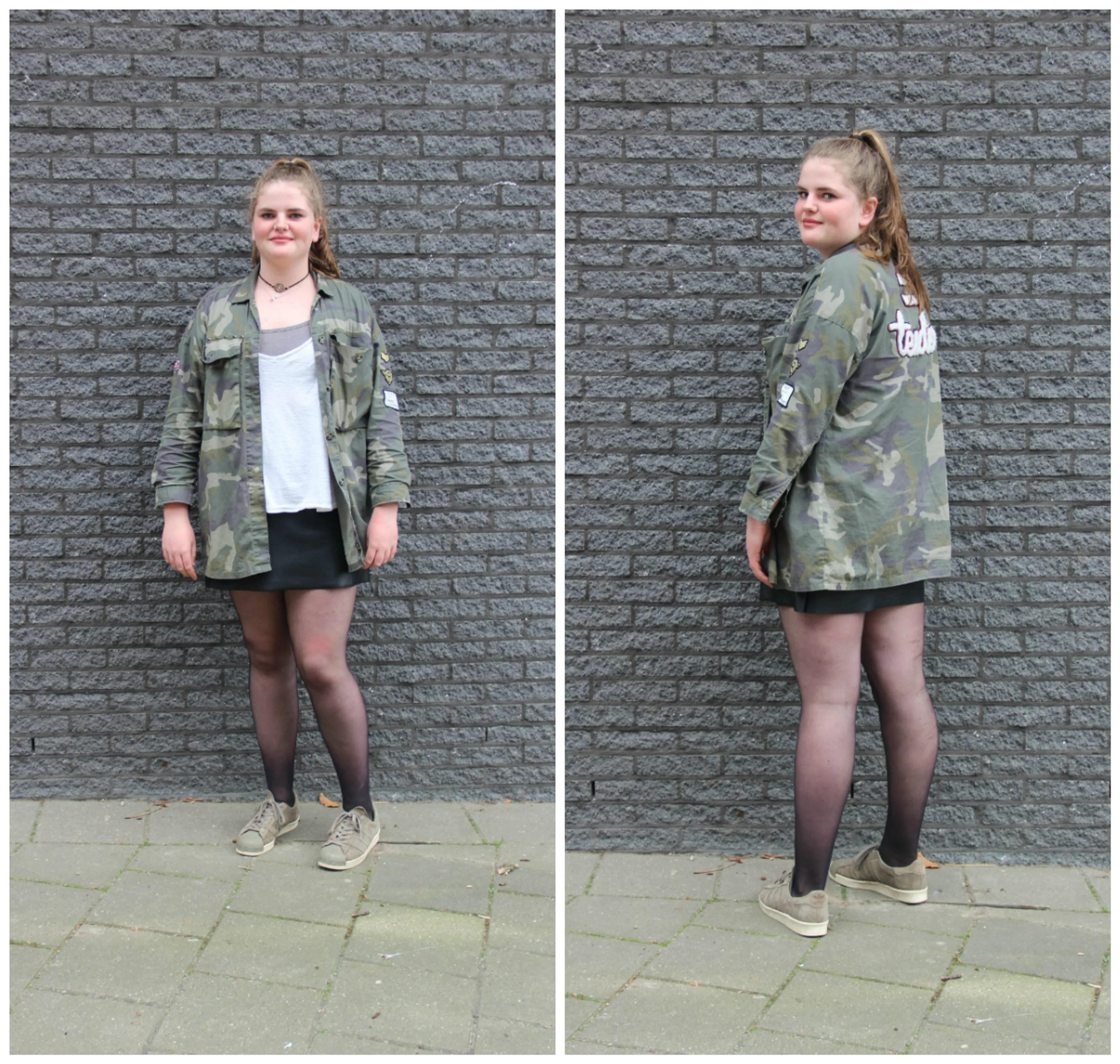 Als we aan Finn uitleggen wat voor fotoserie we maken, wordt ze door haar klasgenoten toegejuicht. "YES Finn!" Ze draagt die dag een van haar favoriete outfits: "Een rokje, sneakers en een legerprintje, dat vind ik altijd leuk!"