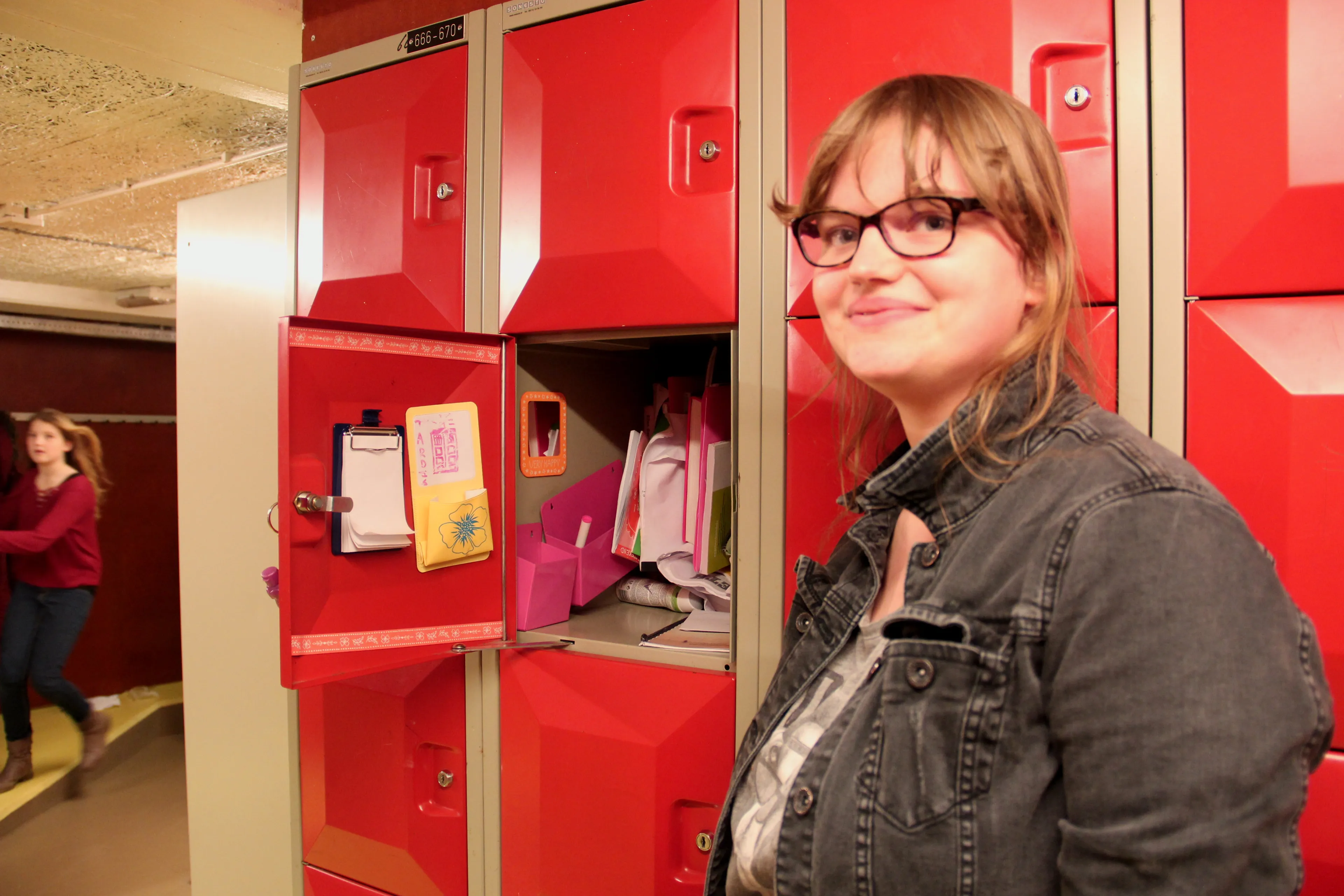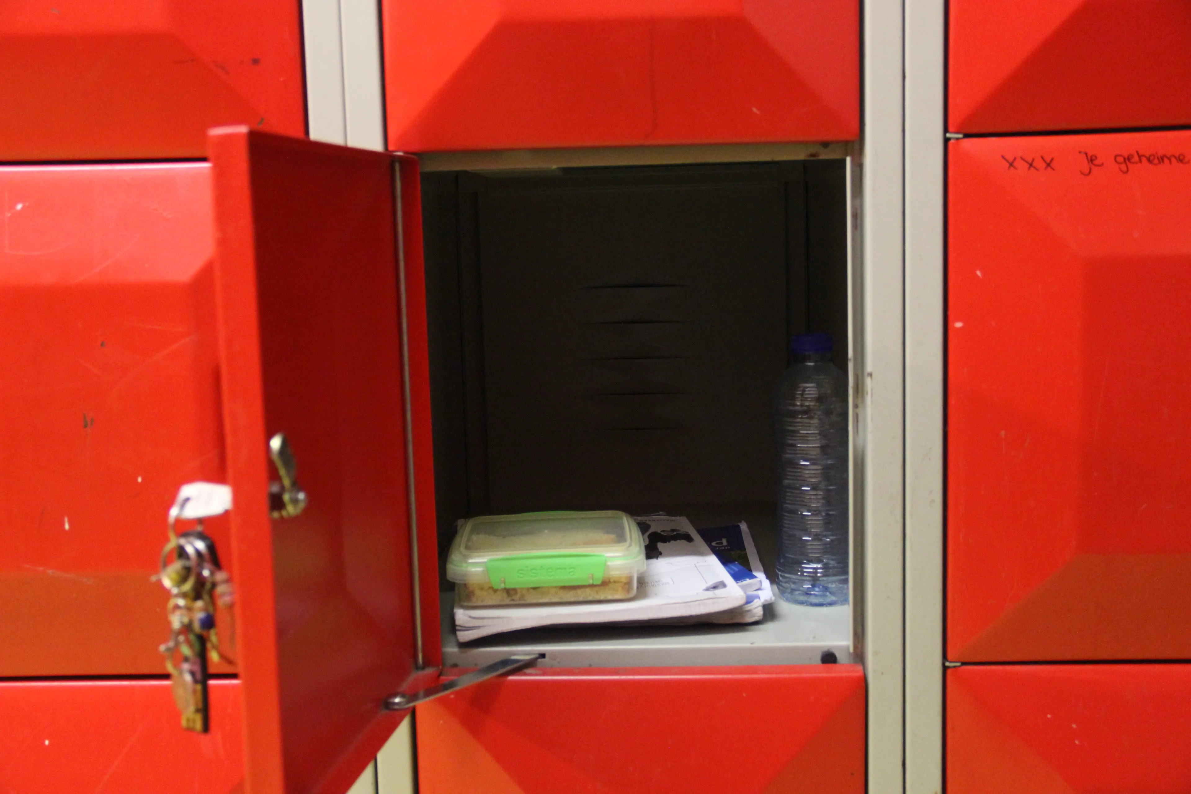 Lotte is het geordende meisje met een opgeruimd kluisje. Wat heeft zij er in? “Bammetjes, een paar boeken en een flesje water.”