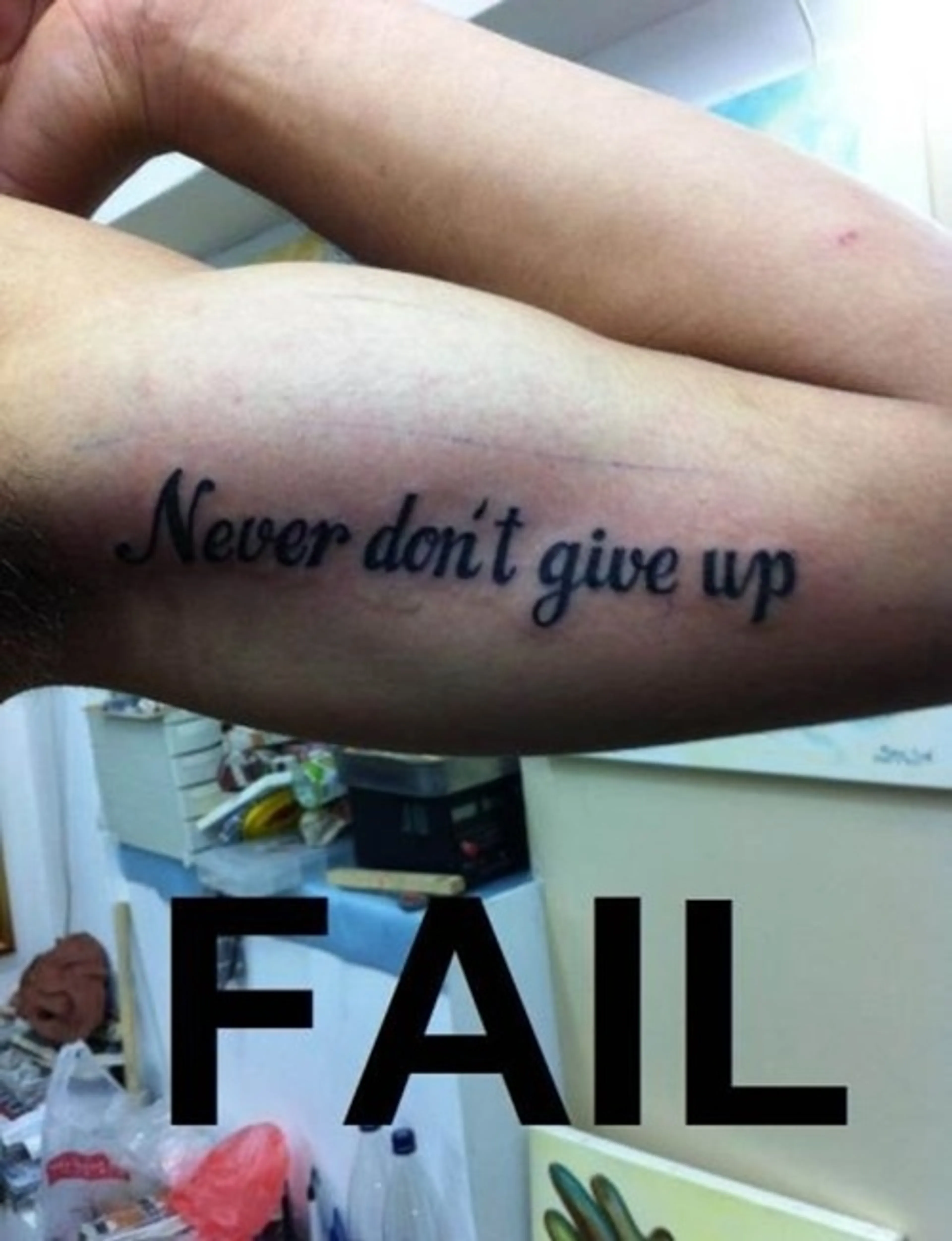 Fotoserie: Spijt van tattoosLeestijd: 1 minGeef een hartjehart0xGeef een hartjehart0xEen tattoo is voor het leven, dus het is verstandig om er goed over na te denken wat je precies op je lichaam laat vereeuwigen. Deze mensen liepen misschien iets te hard van stapel tijdens het beslissen, oepsie: