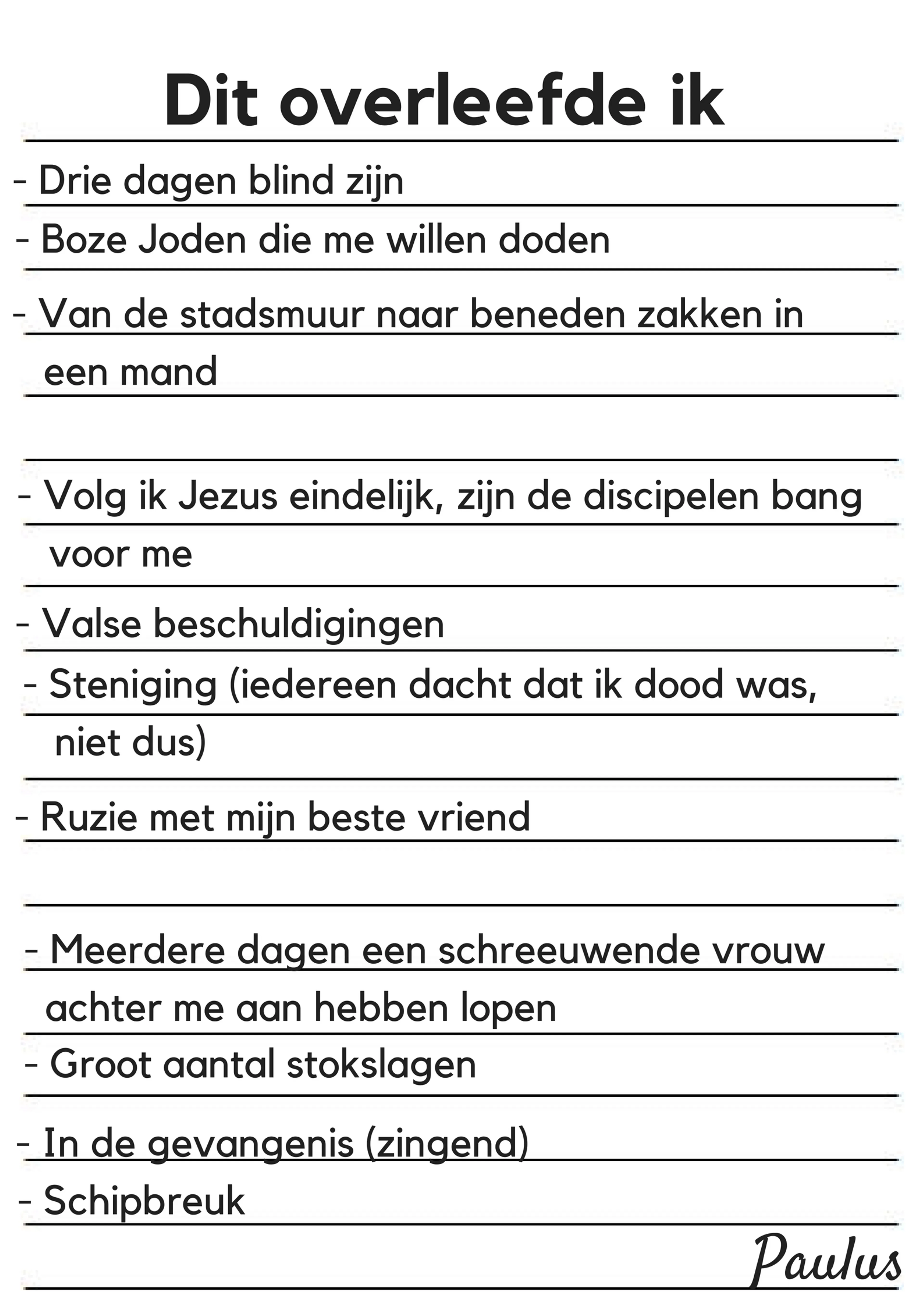 Voordat we verder gaan even een kort overzicht van wat Paulus allemaal heeft overleefd: