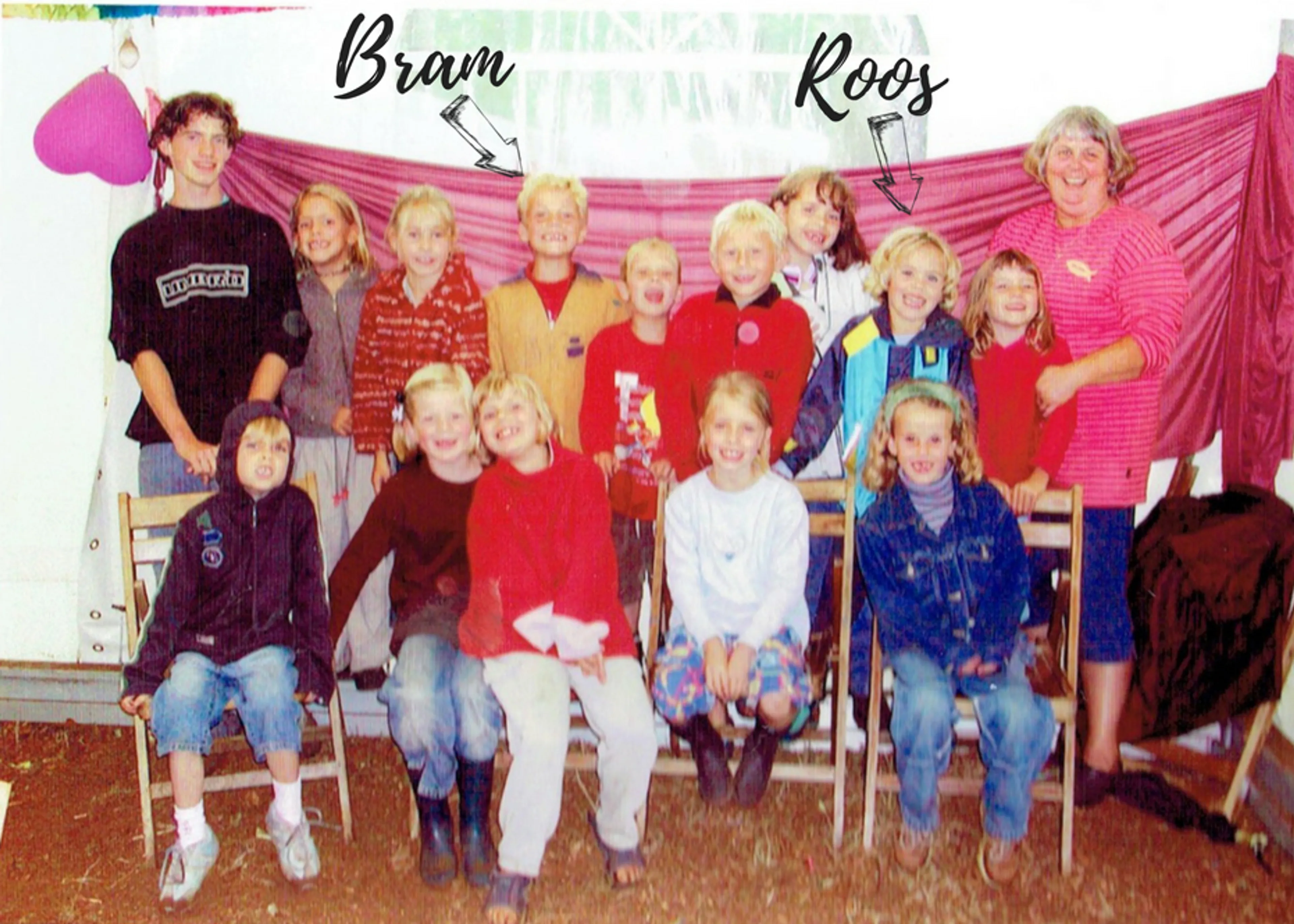 Bram en Roos (nu beide 19) waren 6 jaar oud tijdens hun eerste ontmoeting op het kampeerterrein van de Reveilweek in Voorthuizen. 12 jaar later zagen ze elkaar weer op datzelfde kampeerterrein. Bram spotte een lege stoel, greep zijn kans en ging naast Roos zitten. 5 dagen later hadden ze een relatie.