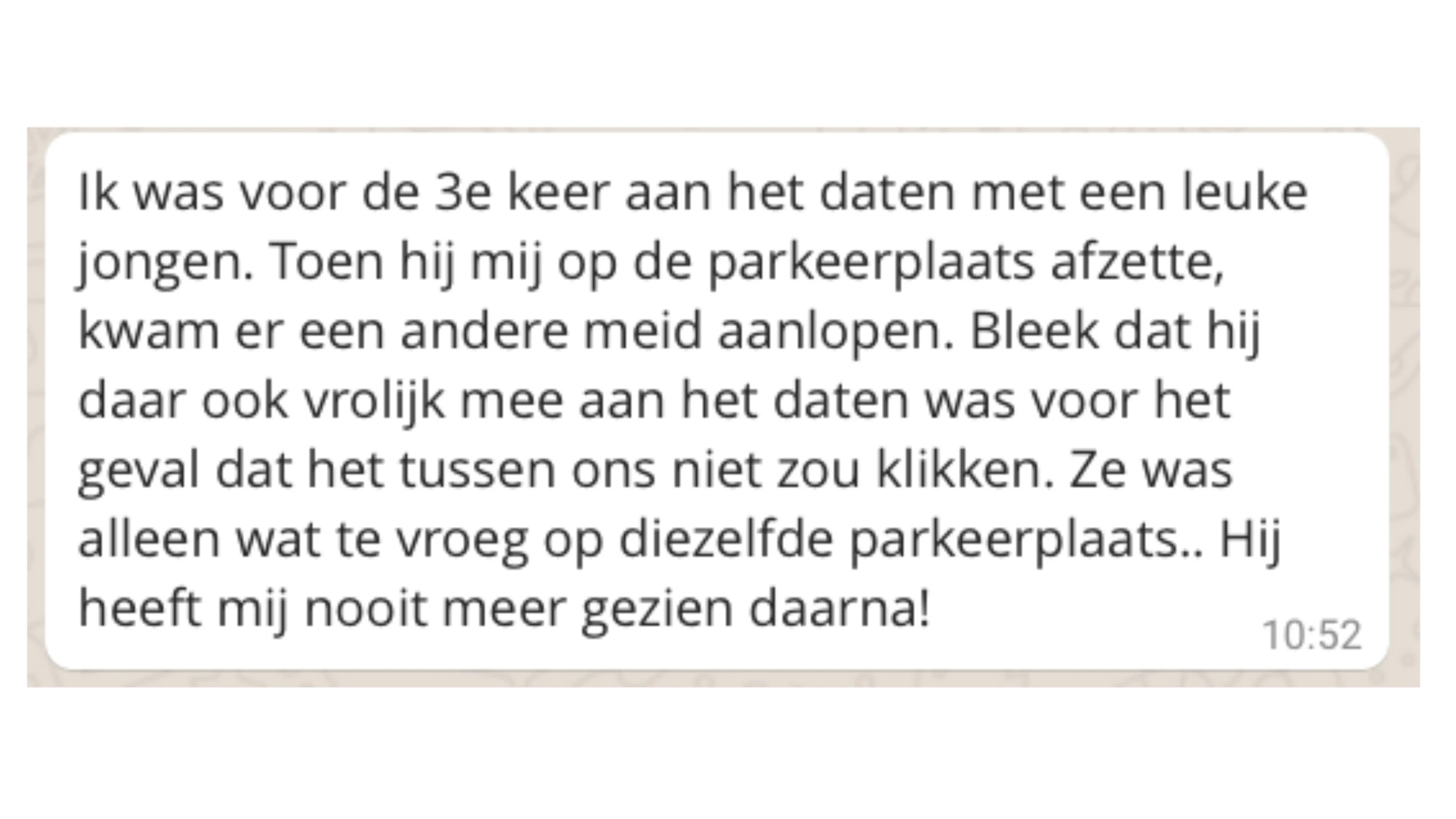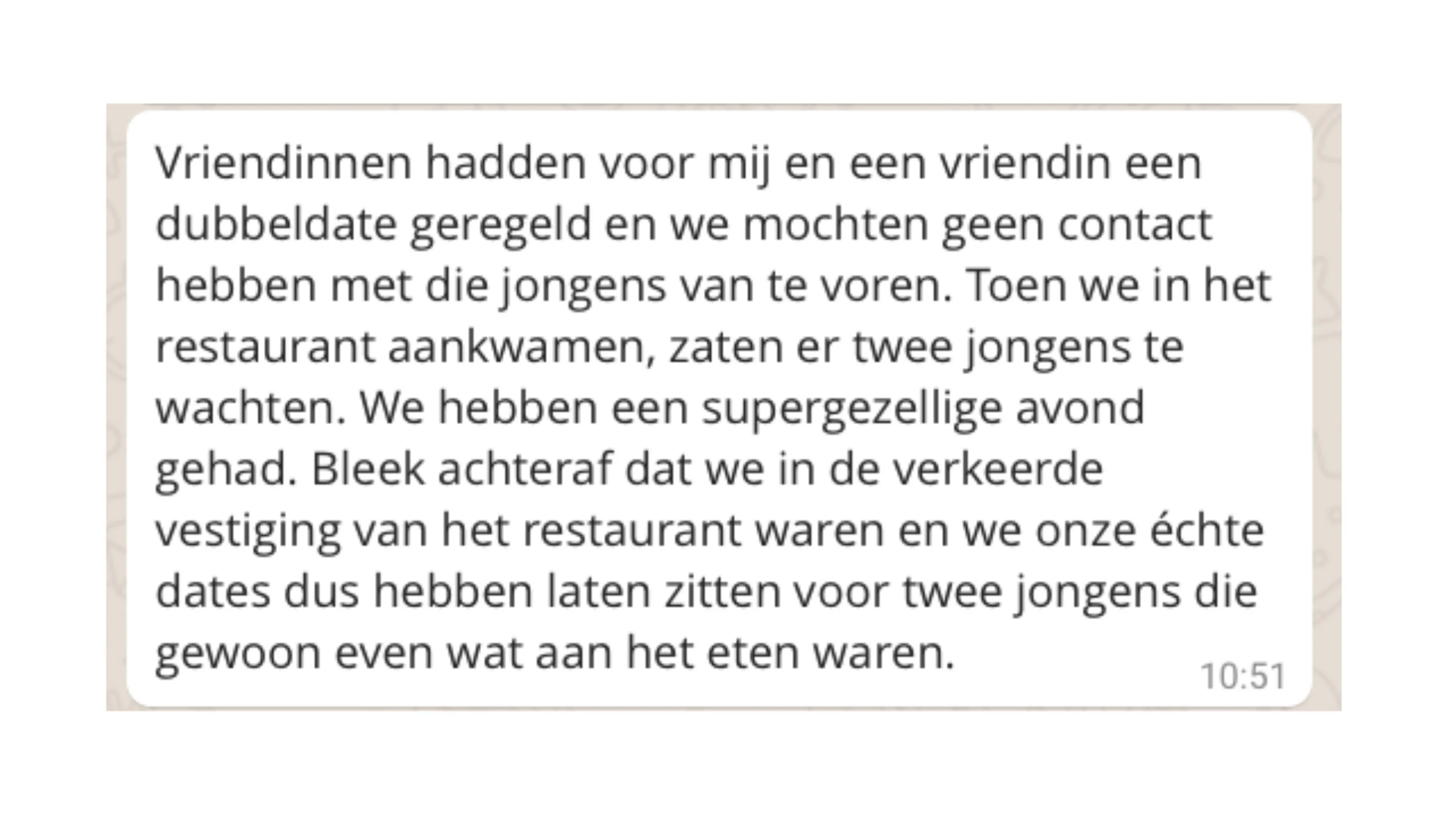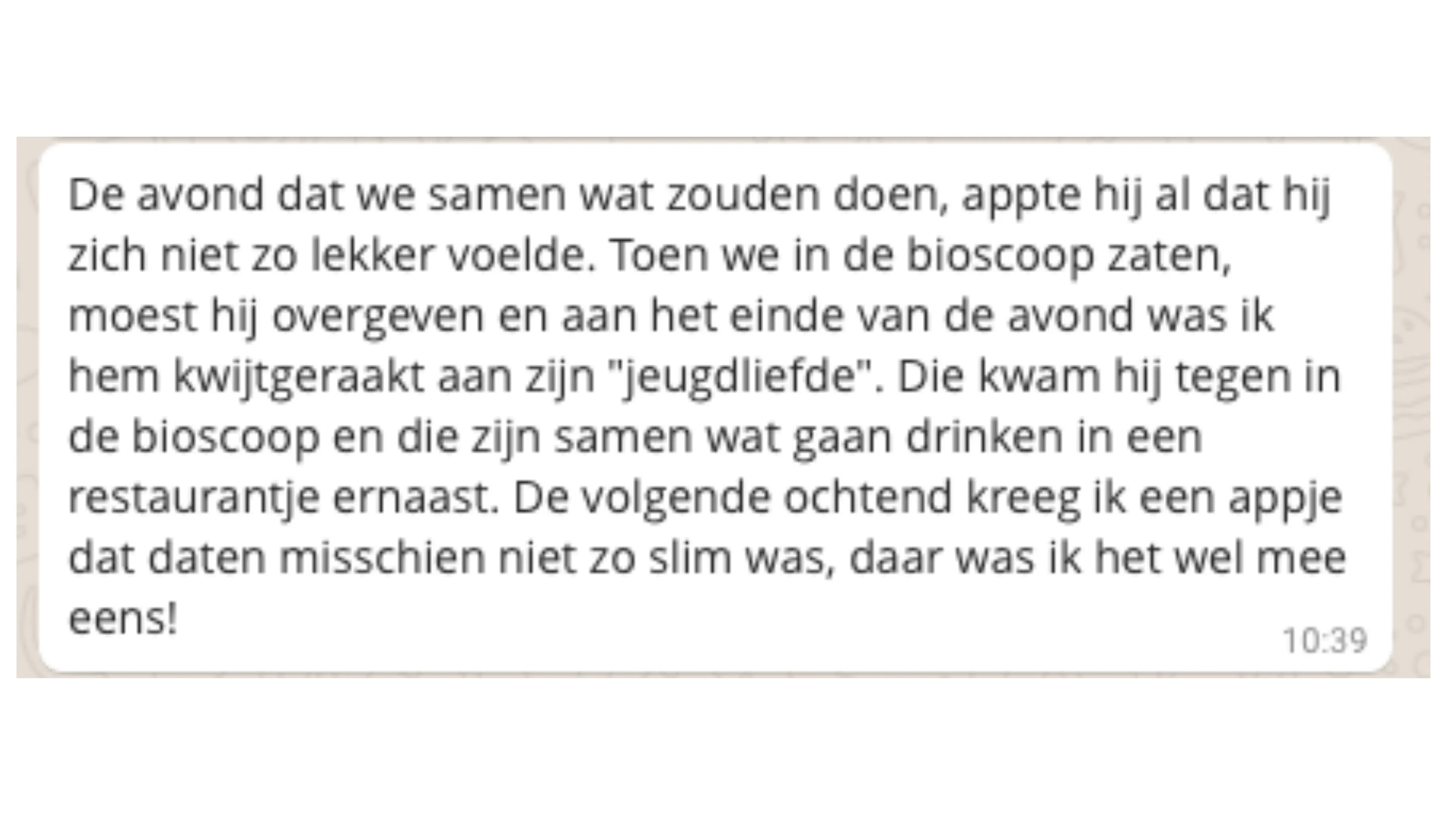 In deze rubriek stellen we een vraag over liefde, lust, seks of geheimen, die jij vervolgens heerlijk anoniem mag beantwoorden. De vraag van deze week: welke date zal jij nooit vergeten?