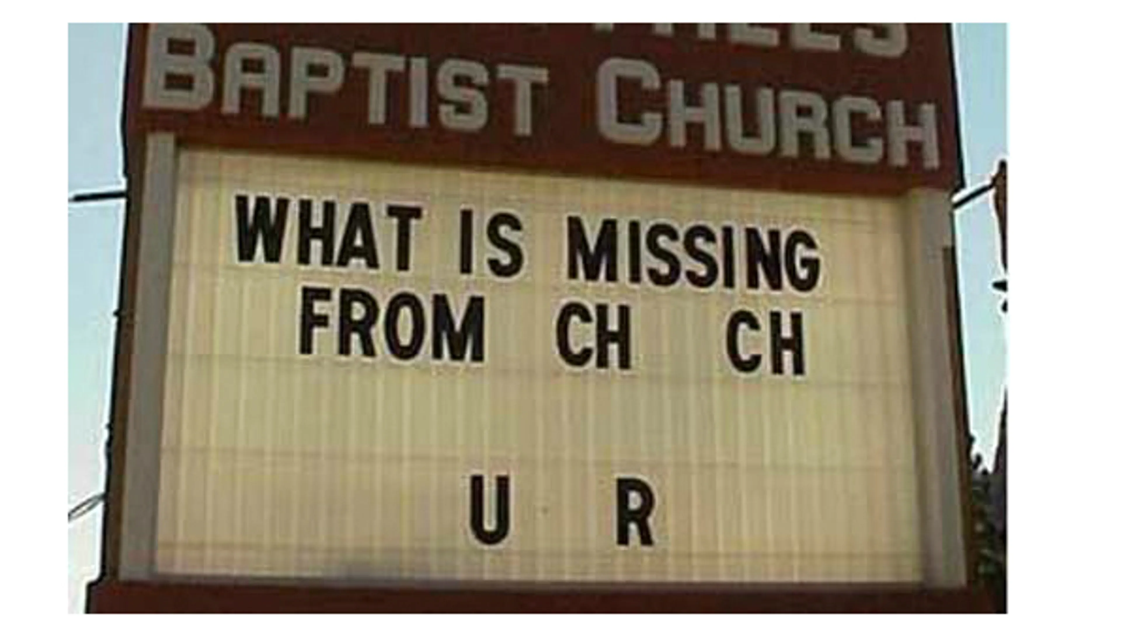 In de Verenigde Staten zijn 'churchsigns' een ding. Een 'churchsign' is een bord waar op aangegeven staat welk thema de dienst heeft en hoe laat deze begint. Beetje saai he? De volgende kerken tillen 'churchsigning' dan ook naar een heel nieuw level..