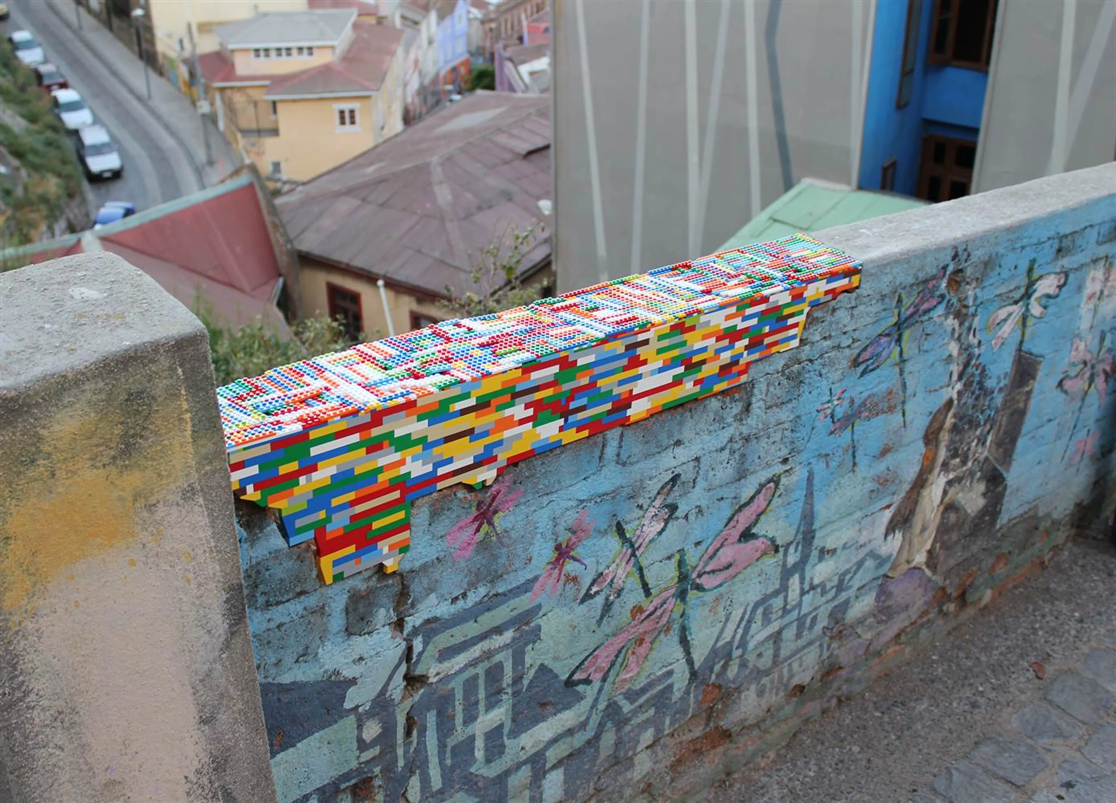 Voor zijn project ‘dispatchwork’ heeft hij over de hele wereld al muren ‘gerepareerd’. In veertig steden, verspreid over Europa, Centraal America, Azië en de Verenigde Staten, zijn de ingebouwde muren te vinden. De reden dat hij dit doet? Hij wil de oude architectuur combineren met kleurrijke, moderne dingen. En dat doet hij met Lego, cool toch?