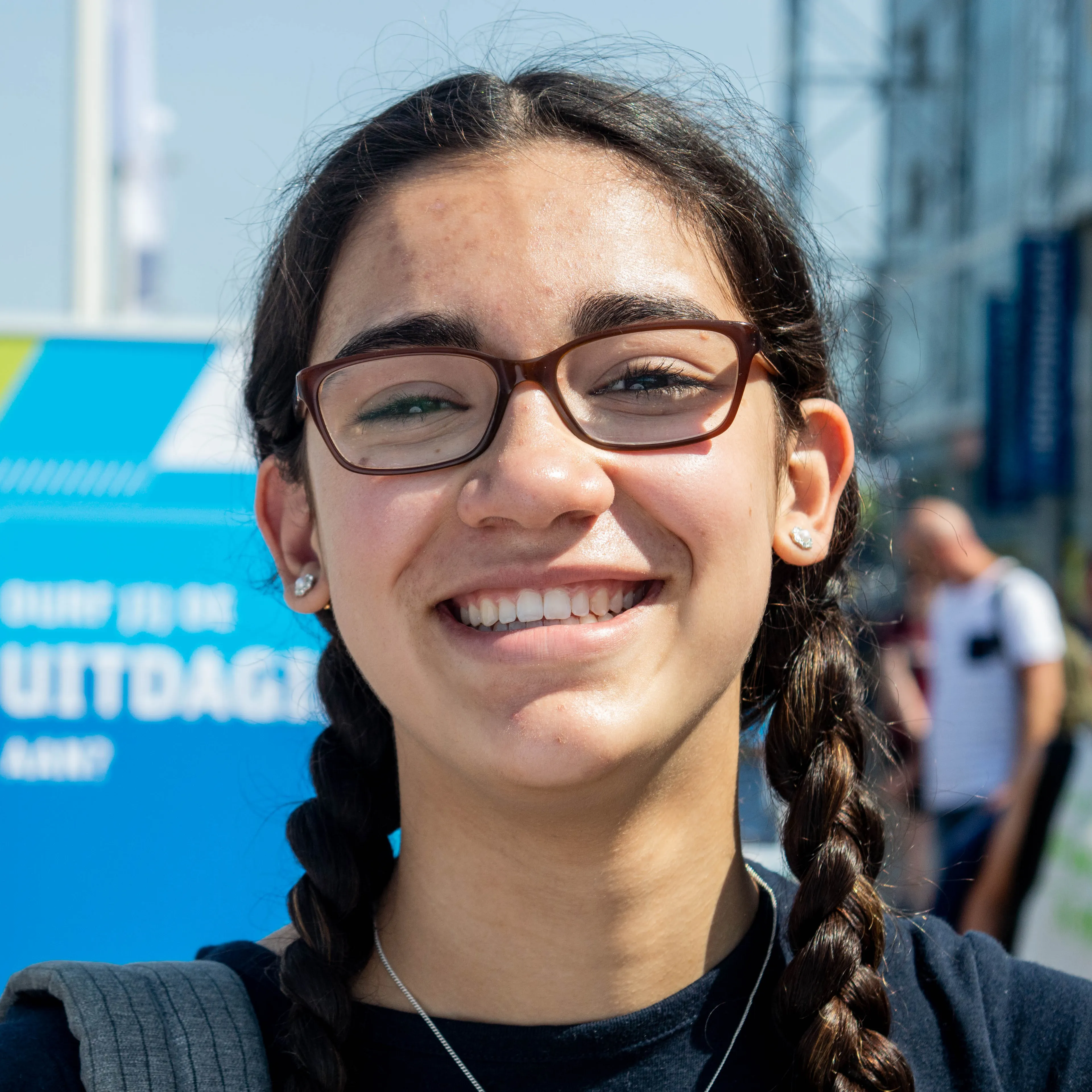 “Ik ben hier voor de tweede keer. Eerder zat ik op de tribune, maar dat was minder leuk. Nu staan we op veld E. Ik vind het heel bijzonder dat alle jongeren hier zo bij elkaar komen om God groot te maken. Uit mijn comfortzone stappen vind ik niet moeilijk, ik ben een vrij open persoon. God zal mijn toekomst mooier maken en daar vertrouw ik op. Ik kan alles tegen hem zeggen en ik weet dat hij luistert.”