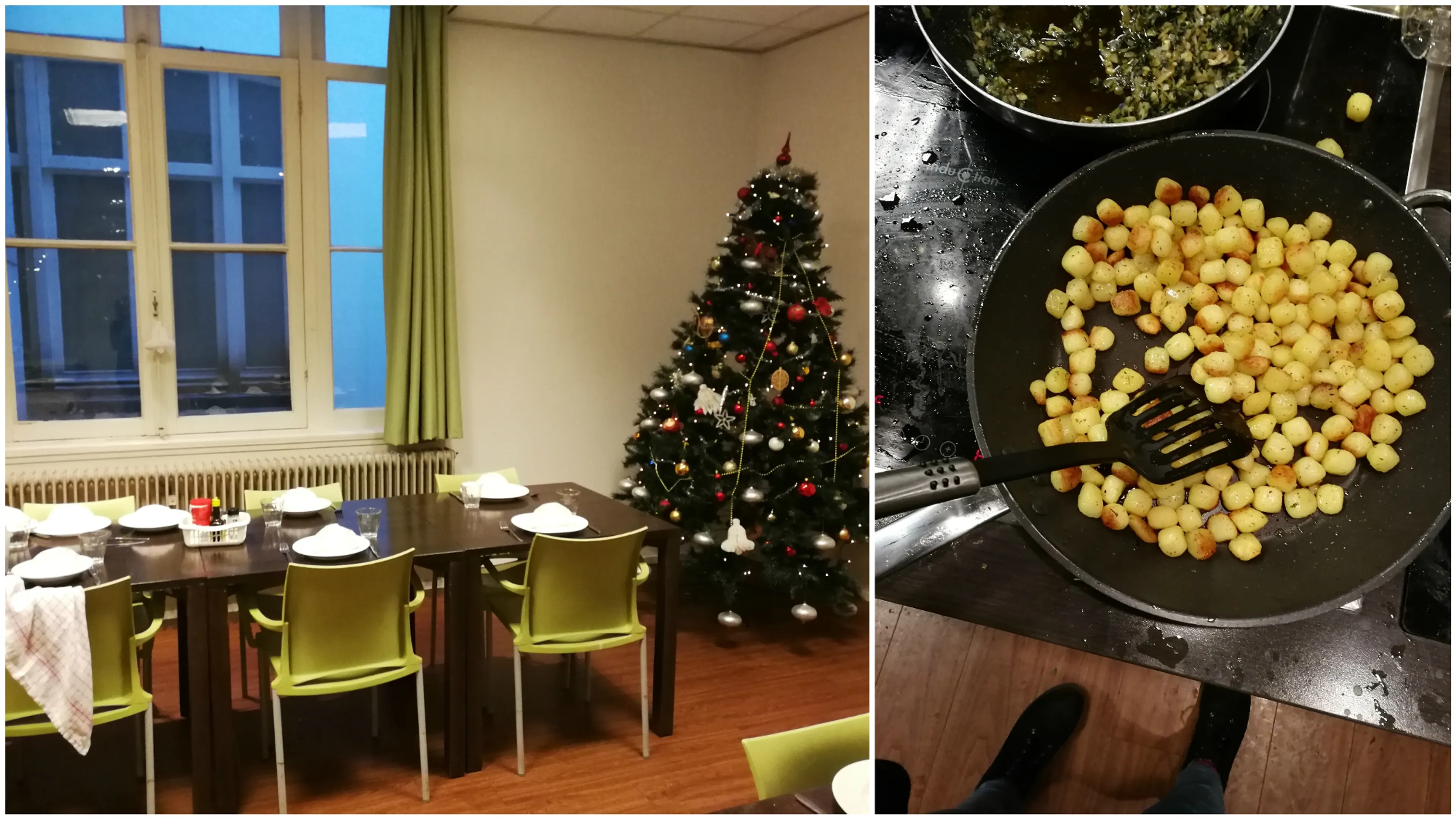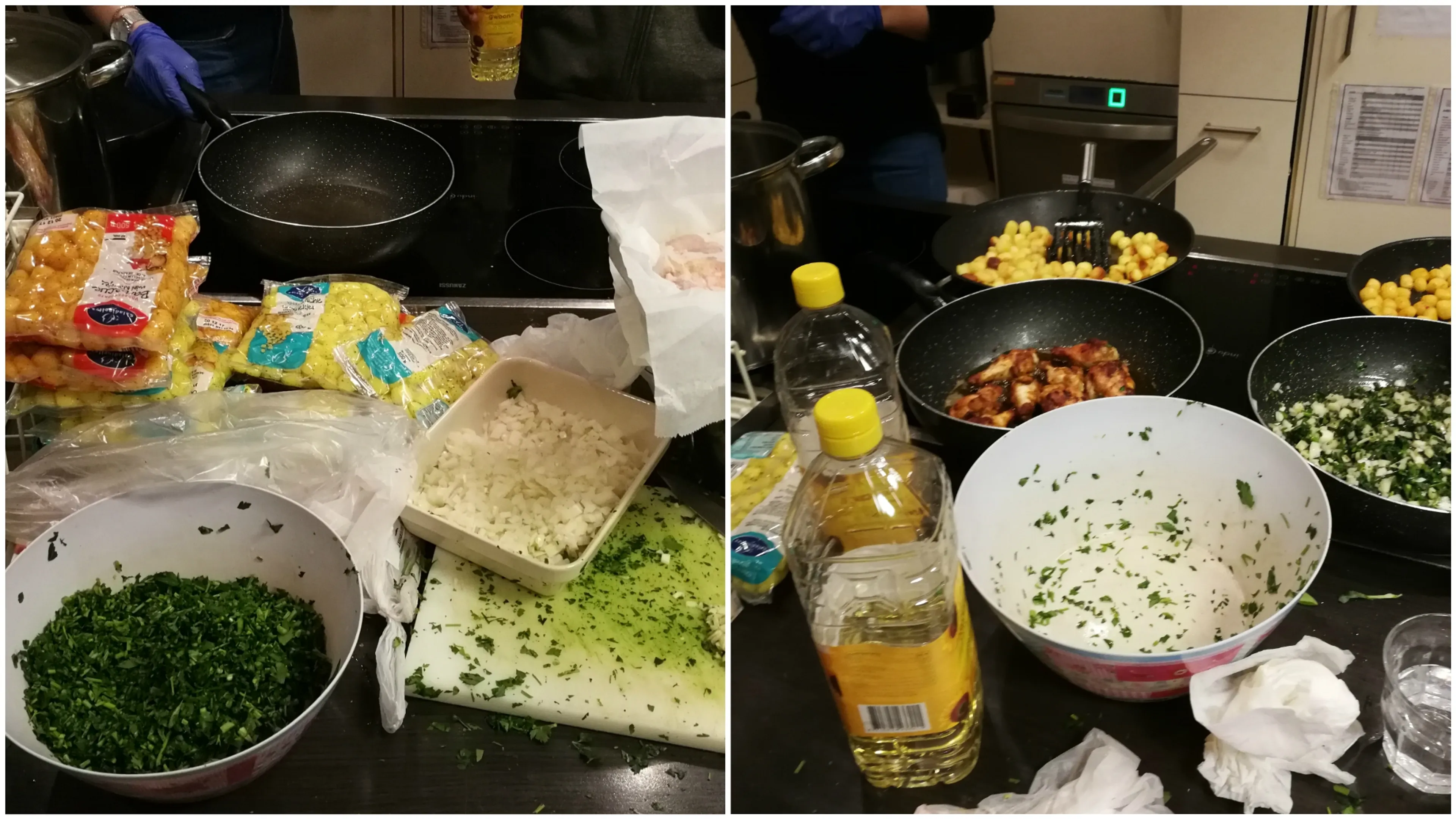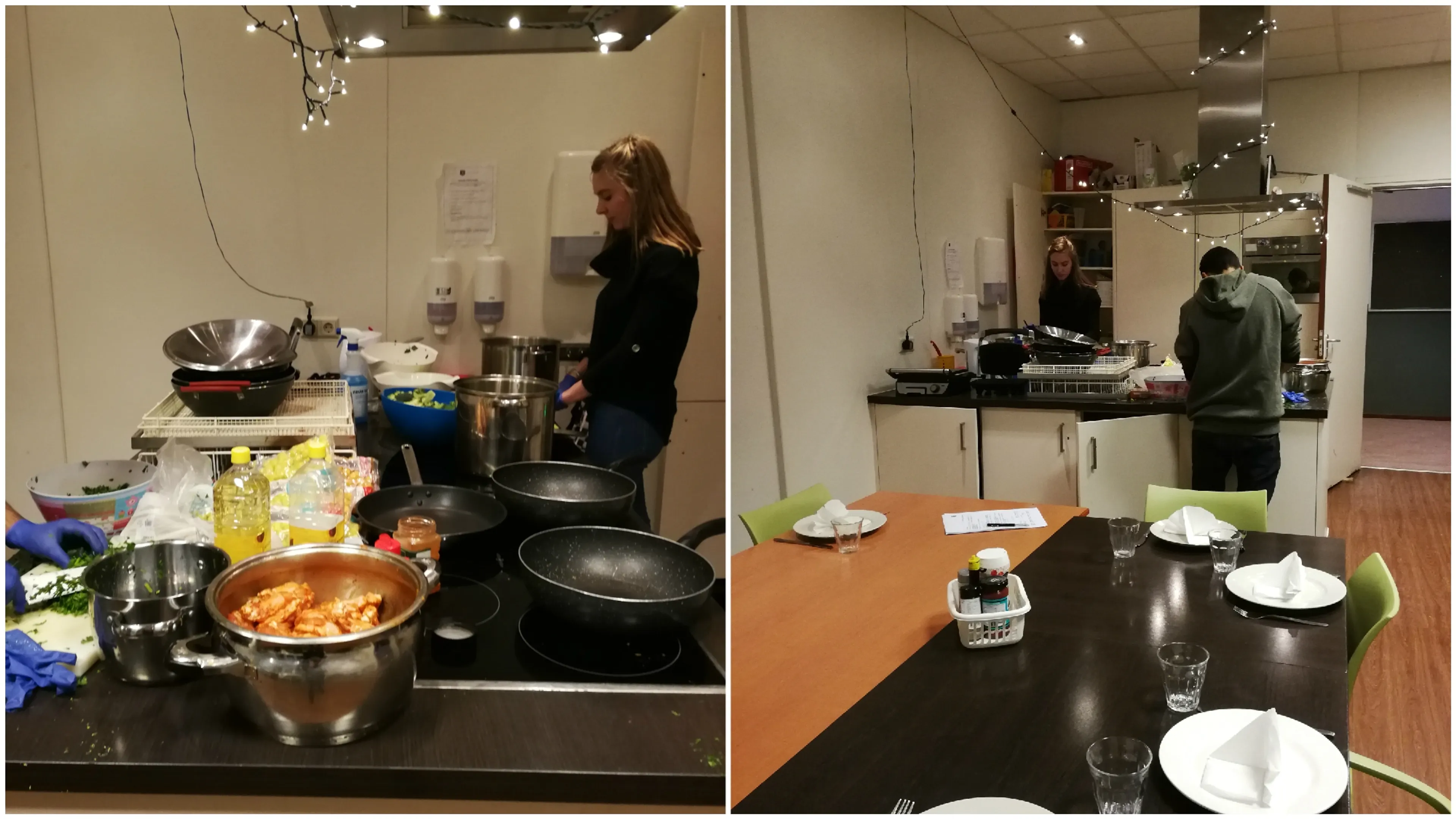 Terwijl iedereen druk bezig is met koken, komt Lisa erachter dat het wat langer duurt dan verwacht. Veel bewoners komen af en toe even kijken waar die lekkere geur vandaan komt en heel beleefd lopen ze weg als ze horen dat het eten nog niet klaar is. ‘’Een van de eerste keren dat ik mee at, voelde het alsof ik een rol speelde in de film ‘Het Schnitzelparadijs’. Het was chaos!’’ Het hele aanrecht is bedekt met vieze en schone pannen, gebruikte snijplanken, plastic verpakkingen en groenteresten. Veel van de bewoners nemen ook even uitgebreid de tijd om hier een grapje over te maken.