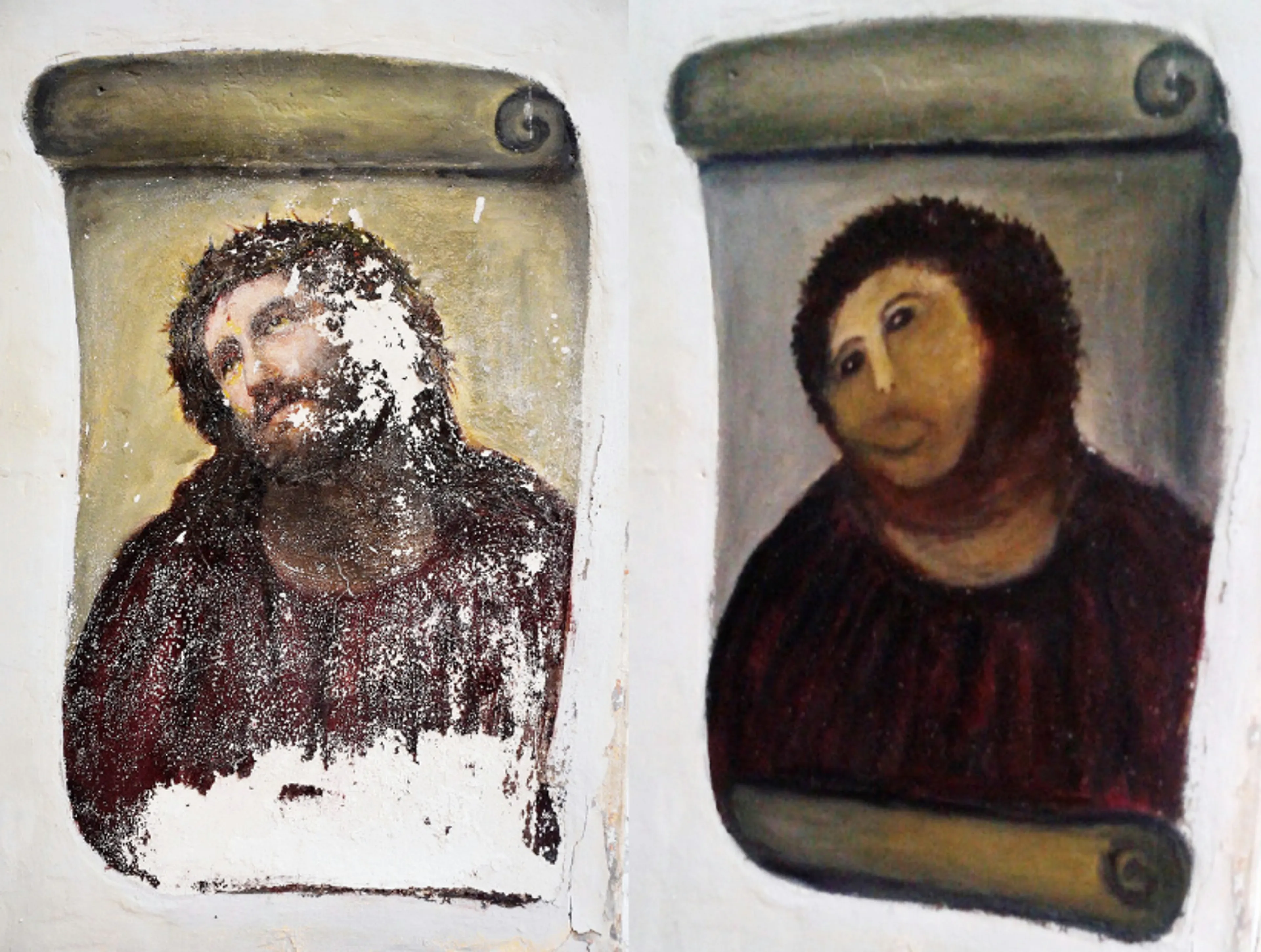 In 2012 werd in Spanje een 100 jaar oude fresco van Christus gerestaureerd door een oudere lokale kerkganger. Sindsdien trekt deze Ecce Homo van Elías García Martínez meer bezoekers dan ooit.