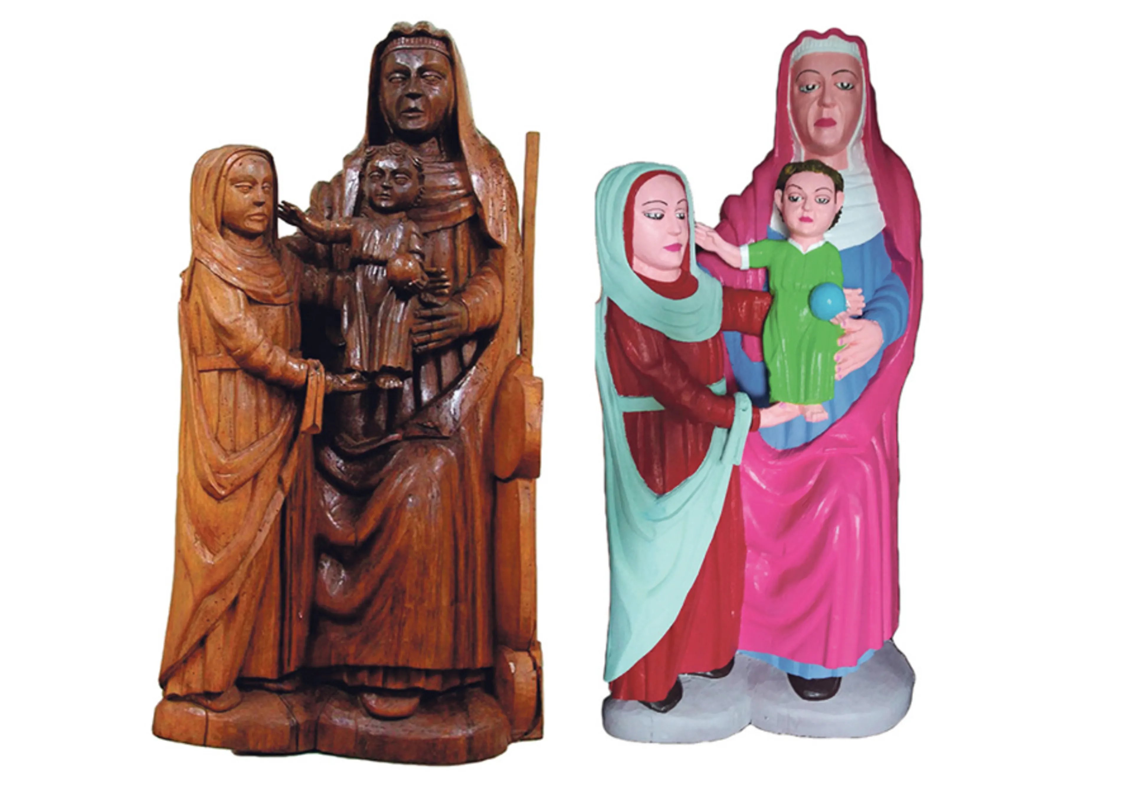 María Luisa Menéndez uit Spanje kreeg van een lokale priester toestemming om een 15de-eeuwse houten beeld een opknapbeurt te geven. Tegen de regionale krant vertelde ze dat ze kleuren koos die ze zelf goed vond passen: Jezus felgroen en Maria knalroze. Bekijk hieronder het resultaat: