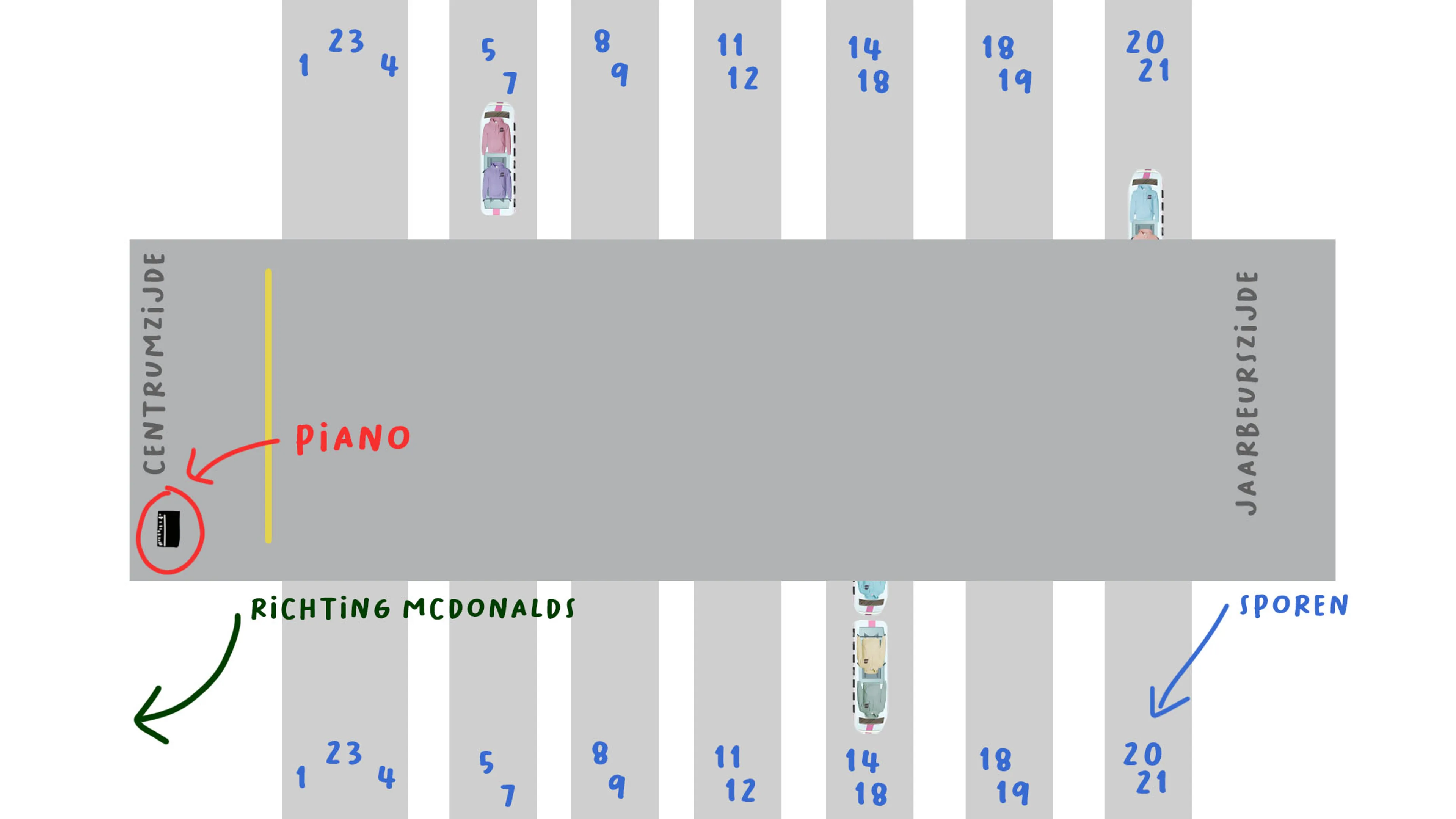 Hier vind je de stationspiano: