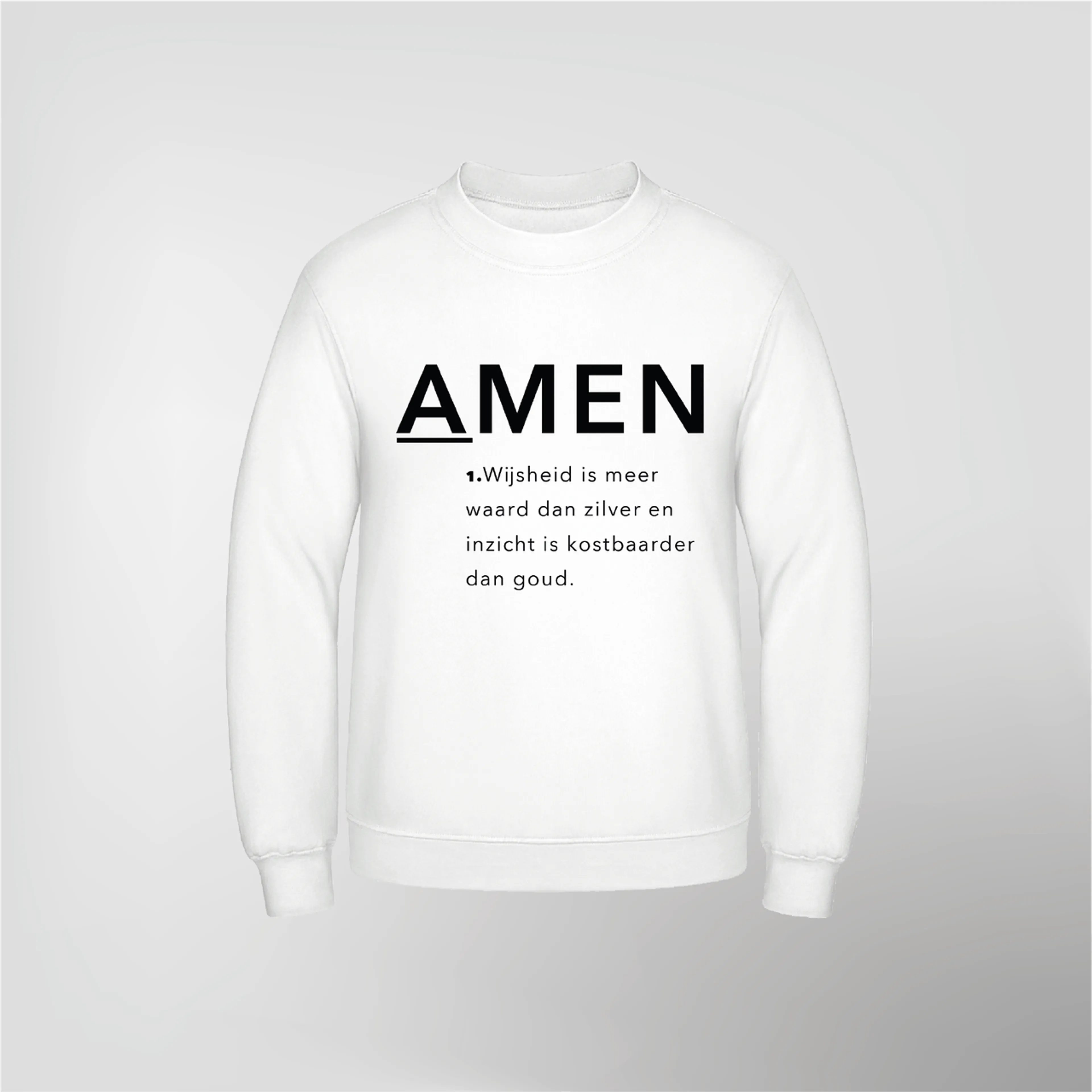 “In eerste instantie maakte ik een magazine, maar ik dacht: die lees je één keer en dan gooi je hem in de hoek. Daarom kreeg ik het idee om een sweater te bedrukken. Ik ontwierp één sweater met de letters AMEN erop. Toen ik verder ging met het project, kwam ik erachter dat ik genoeg materiaal had om een hele collectie te maken! Ik heb nu een aantal hoodies bedrukt met een quote of afbeelding. Ook heb ik schermachtergronden voor smartphones ontworpen. Deze zijn gratis te downloaden. Ook de truien zijn te vinden op mijn website.”