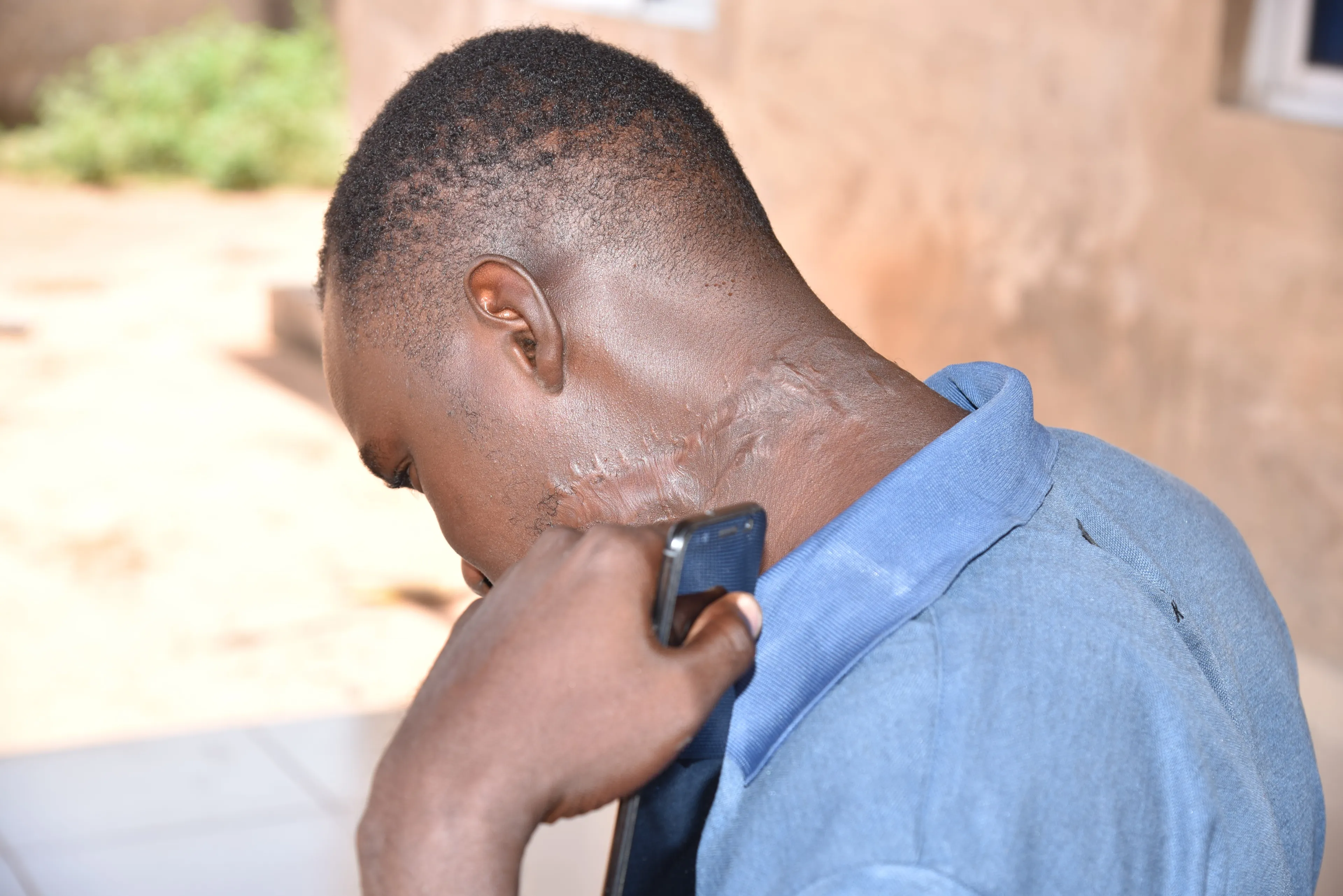 “Na de aanval werden we door buurtbewoners met spoed meegenomen naar het ziekenhuis. Tot op de dag van vandaag zeggen dokters dat het een wonder is dat ik de aanval heb overleefd. Ik ging door een zware herstelperiode; ik heb lang in het ziekenhuis gelegen en kon niets. Ik was boos op de terreurgroep, want niet alleen was ik serieus gewond geraakt, ze hadden mij ook mijn vader afgenomen. Ik weet nog goed dat veel mensen om mij heen me bemoedigden. Dit hielp mij er weer bovenop. Het belangrijkst is dat God mij een tweede kans heeft gegeven, dus ik ben na de aanval dan ook volop voor Hem gegaan. Overal waar ik over Hem kan vertellen, doe ik dat. Trouwens; ik schaamde mij eerst voor het enorme litteken in mijn nek, maar tegenwoordig ben ik er trots op. Het is voor mij hét bewijs dat God echt is. Als Hij een simpele jongen zoals ik een tweede kans wil geven, zal Hij die ook aan een ander bieden.”