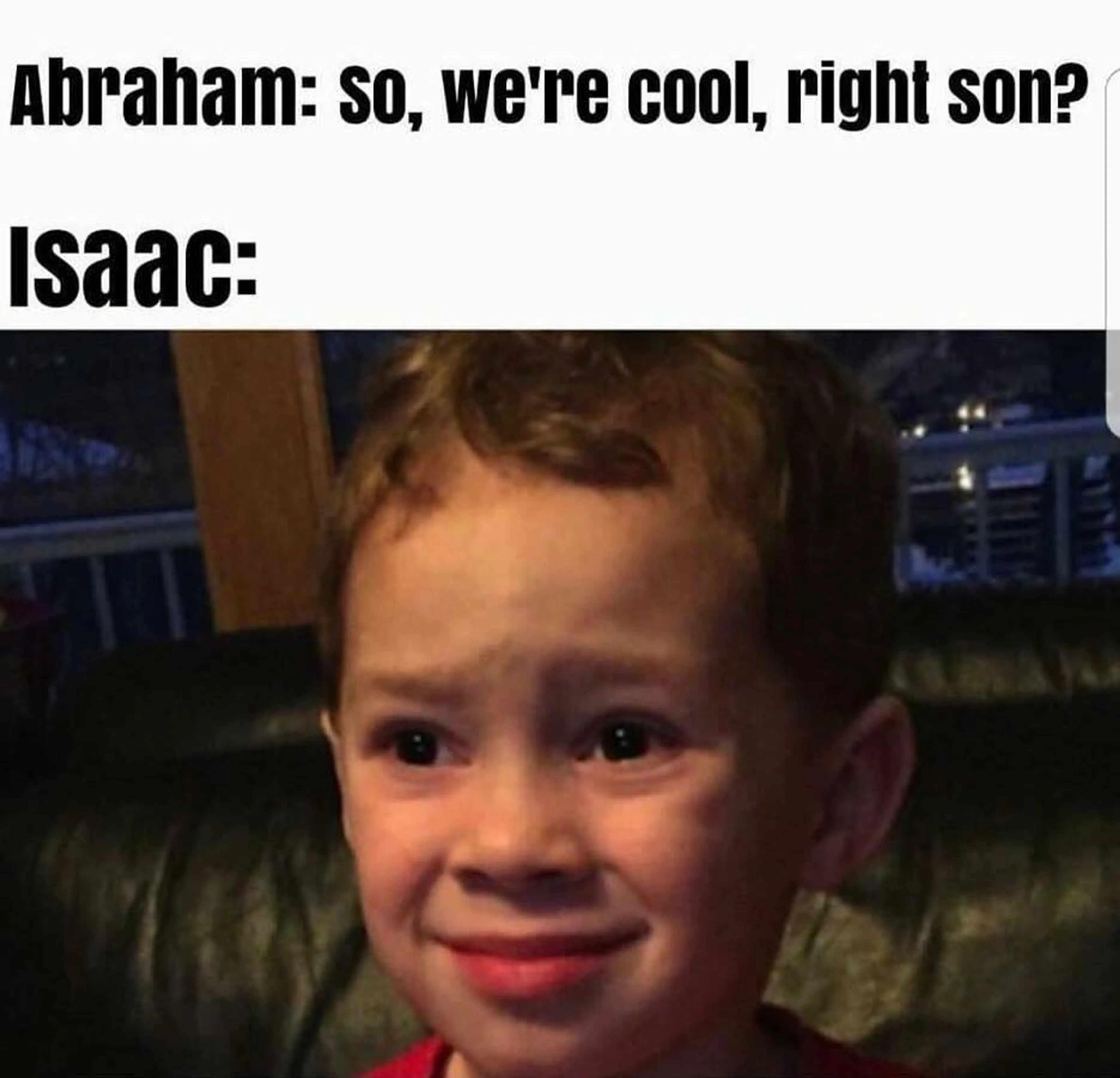 5. Wanneer je net je zoon probeerde te offeren