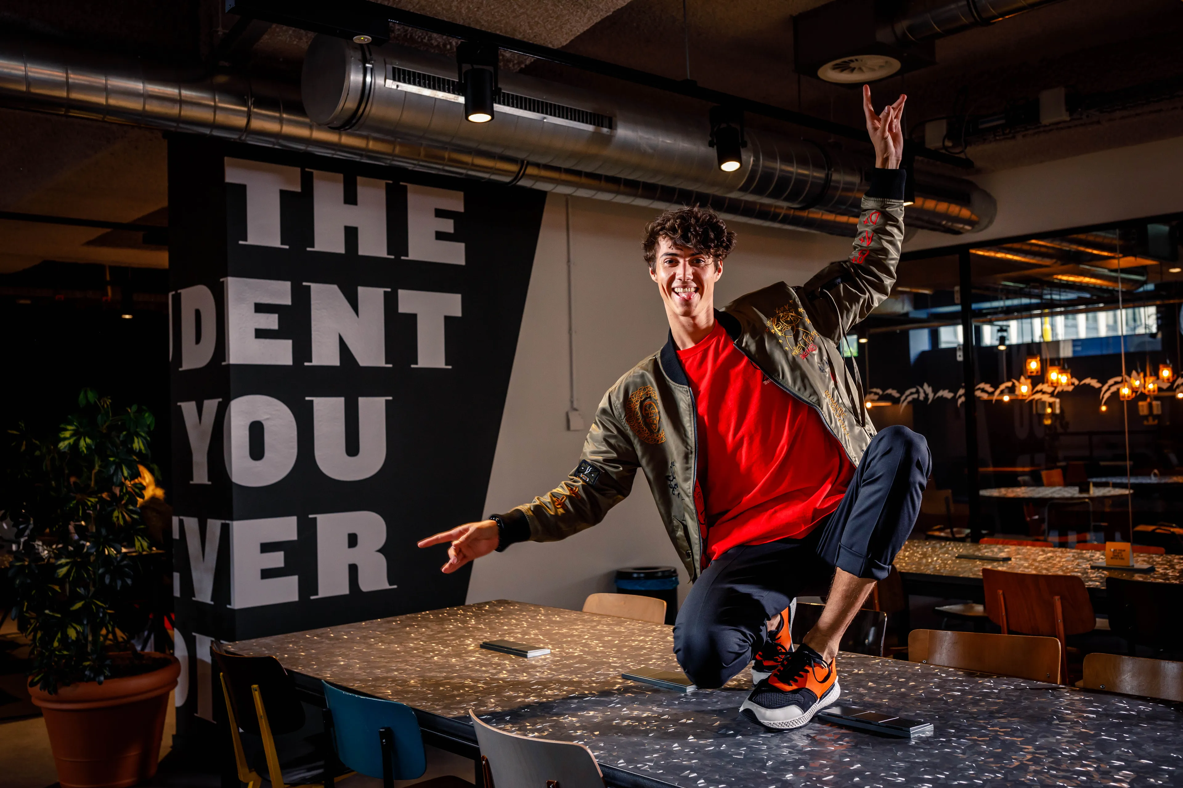 Waar Niek zich ook fantastisch voelt, is op het voetbalveld. “Ik sta linksback. Als ik met mijn lange benen naar voren ren, roepen teamgenoten me toe: ‘O, Niek gaat weer even op de “brommert”!’ Wanneer ik scoor, krijg ik een enorme adrenalinestoot. Net als wanneer ik na een auditie word gebeld met de uitslag. Als ik de rol krijg, blijf ik in eerste instantie heel netjes.” Niek houdt zijn telefoon bij z’n oor en praat tegen het denkbeeldige castingbureau. “Is goed. Ik hoor het wel, hè? Doei, doei!” Hij hangt op en begint in slow motion te juichen. “Ja, dan ga ik helemaal uit m’n plaat. Schreeuwen, springen … met alles erop en eraan! Op dat soort momenten voel ik echt dat ik lééf.