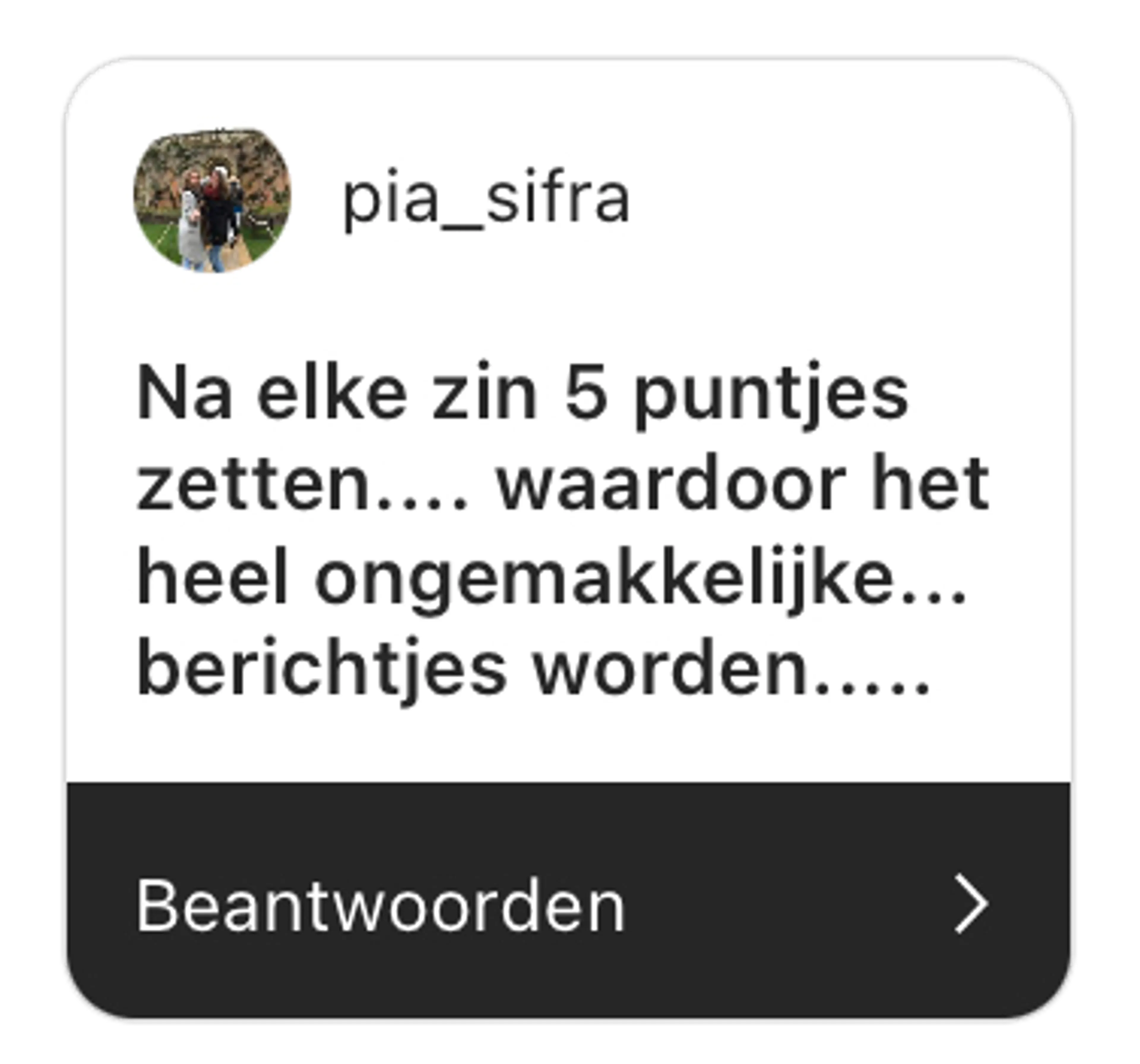 We willen hier even duidelijk een punt maken: één punt dus en niet meerdere. Want..…dit…leest…toch.heel..…irritant???! 1400 voor Christus gebruikten ze de spatie al, dus waarom kunnen jullie het niet, haha? G.r.a.a.g.!!!