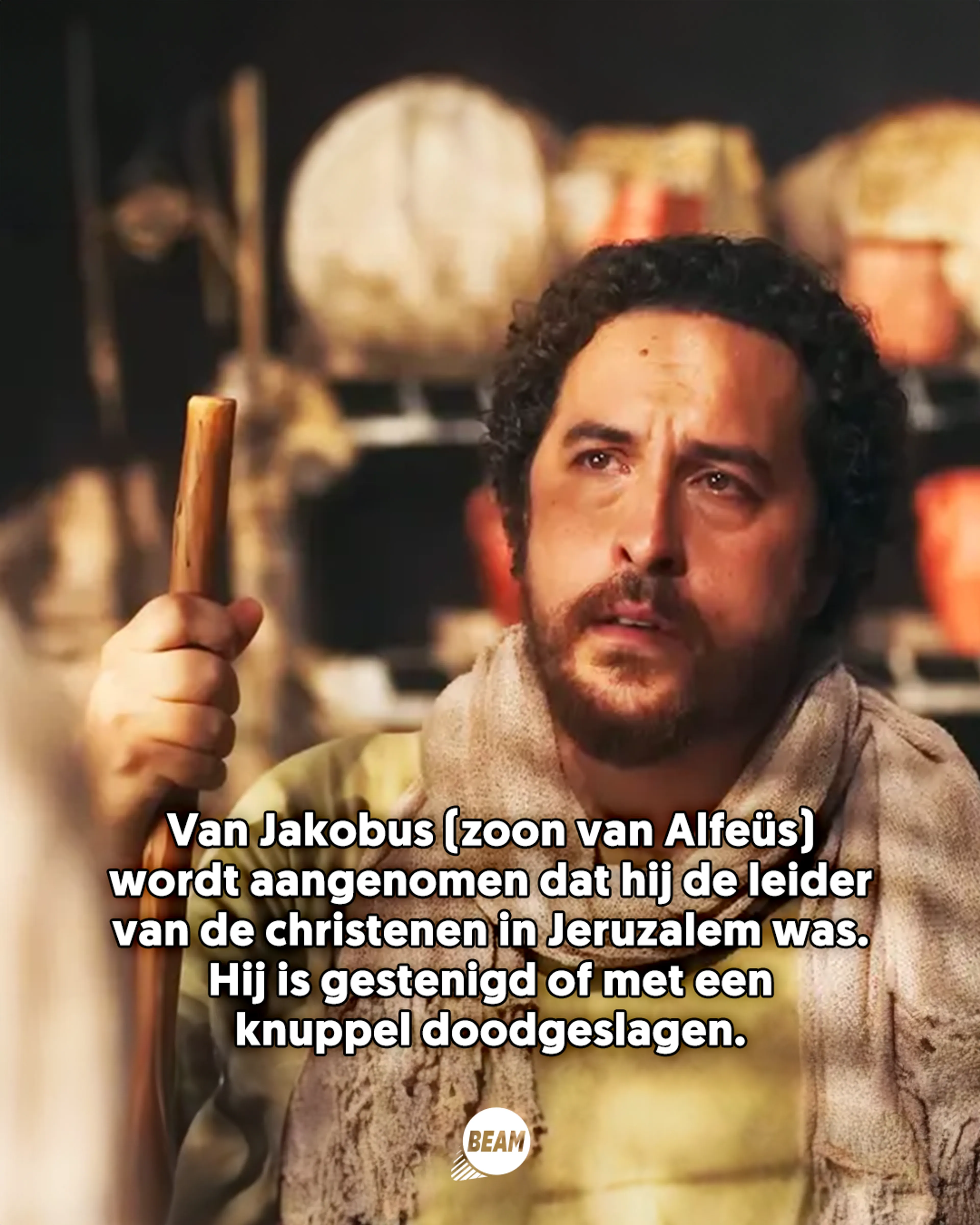 In de groep leerlingen van Jezus waren twee mannen die Jakobus heette. Deze Jakobus, de zoon van Alfeüs, kreeg dan ook de bijnaam ‘Jakobus de kleine’. Dit zou met z’n lengte te maken kunnen hebben of met zijn leeftijd. Nadat Jezus is opgestaan uit de dood en terugkeert naar de hemel, wordt Jakobus gezien als de leider van de christelijke gemeenschap in Jeruzalem. Volgens de verhalen werd hij uiteindelijk gestenigd of met een knuppel doodgeslagen.