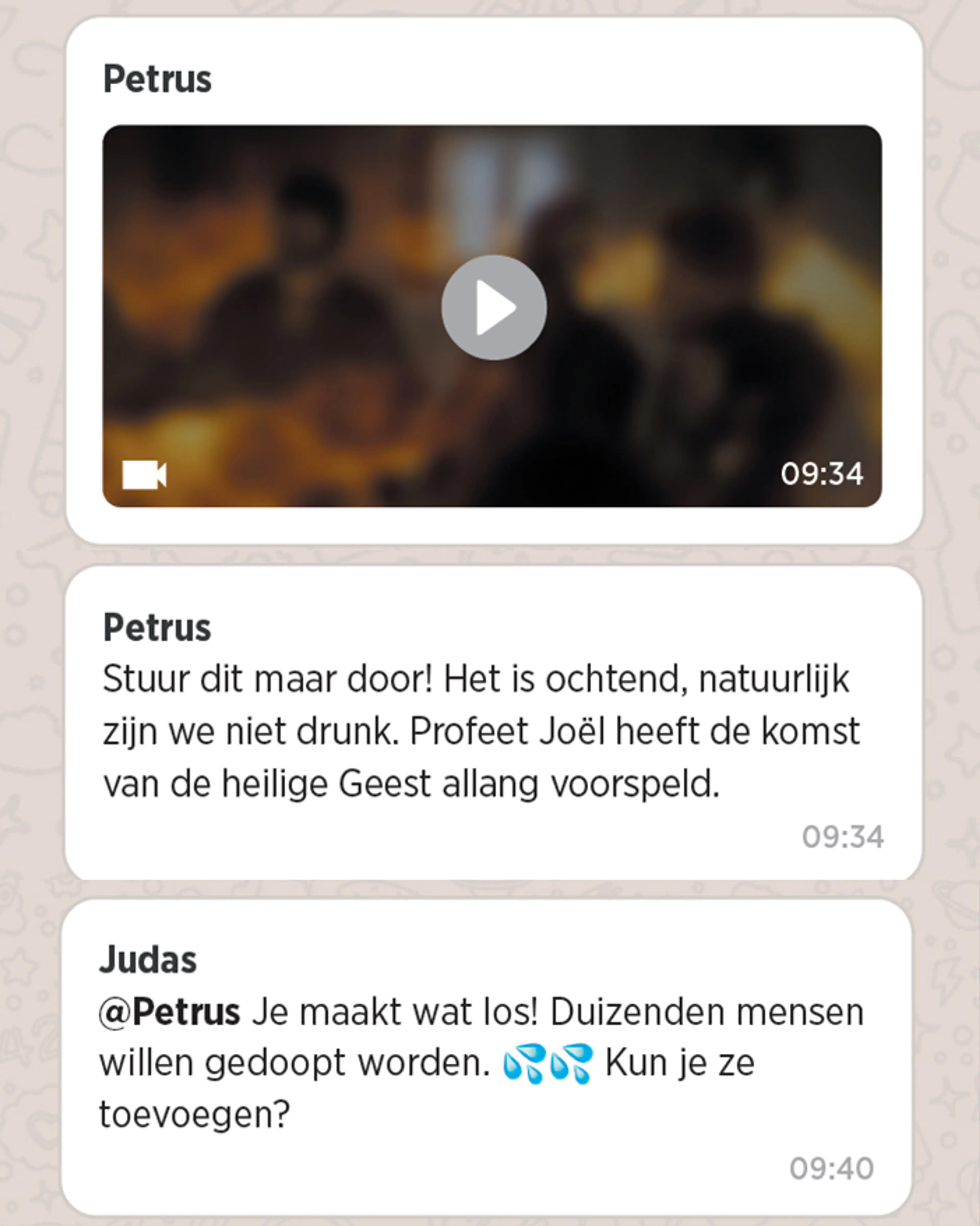 Het is Pinksteren! Maar wat als de Heilige Geest niet tweeduizend jaar geleden, maar in 2021 wordt uitgestort? En wat als we daar via WhatsApp over zouden communiceren?