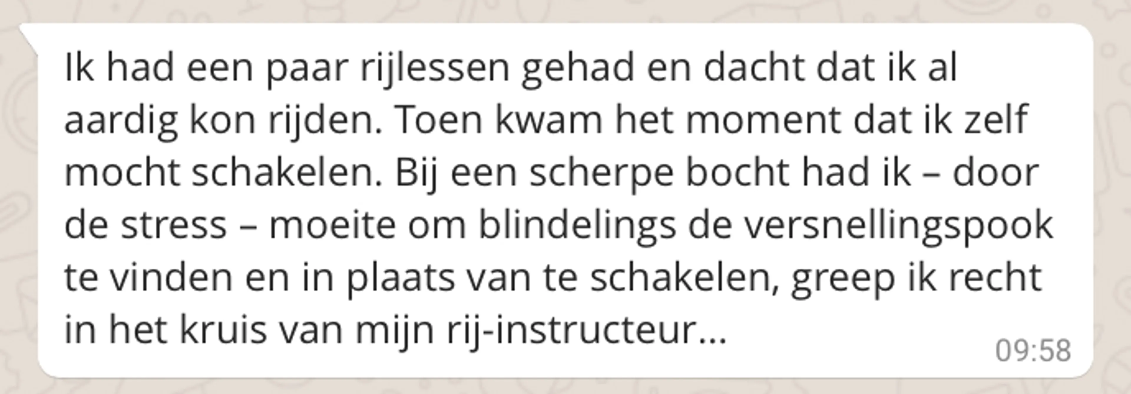 In deze rubriek stellen we een vraag over liefde, lust, seks of geheimen, die jij vervolgens heerlijk anoniem mag beantwoorden. De vraag van deze week: wat is jouw gekste rijleservaring?