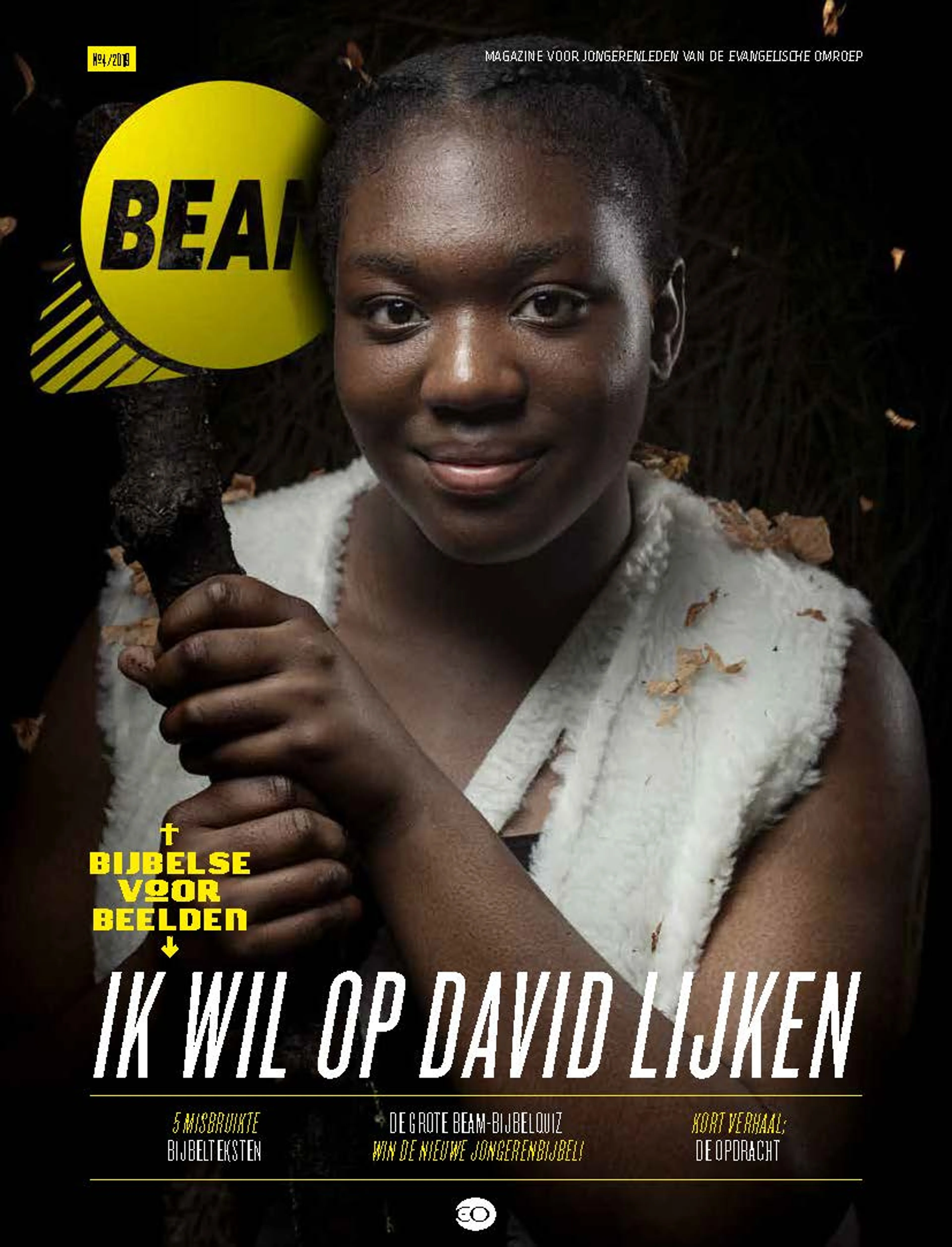“In het BEAM Magazine sta ik op de foto als David, omdat het mijn lievelings bijbelfiguur is. Hoe meer ik over David ontdek, hoe meer ik door hem word geïnspireerd. David was een buitenstaander, omdat zijn moeder ongetrouwd was. Hij werd een simpele herdersjongen, want meer vonden de mensen hem niet waard. In het echte leven kan ik soms overdonderd worden door mensen die hun zaakjes beter op orde lijken te hebben dan ikzelf. Zo had ik best wel stress over mijn bijbaan, want mijn contract was 20 uur per week en dat lukte echt niet met studie en stage er nog naast. Ik zat er echt mee in mijn maag en heb veel gebeden. Uiteindelijk hebben drie vrienden die van niets wisten allemaal apart tegen me gezegd dat het belangrijk voor me is om meer balans te zoeken in mijn leven. Dat was voor mij wel een antwoord op de vraag wat ik met mijn baantje moest, intussen ben ik daar gestopt en ervaar ik meer rust.