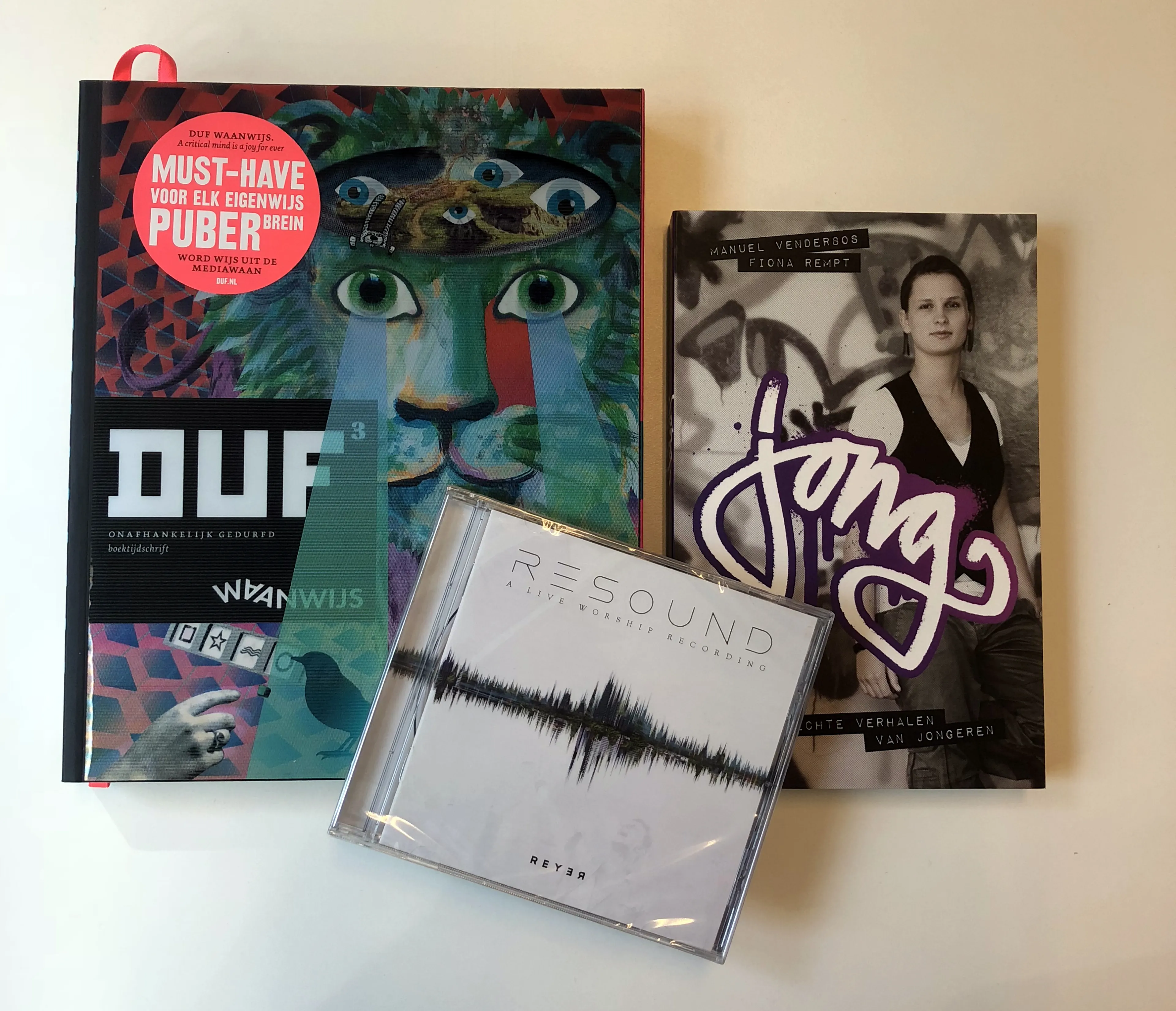 DE ZOMER: tijd voor boeken lezen en muziek luisteren. BEAM heeft de redactie opgeruimd - dit mag in de krant - en geeft 10 zomerpakketten weg. Het derde pakket bestaat uit het album Resound van Reyer, het boek Jong en het boektijdschrift DUF.