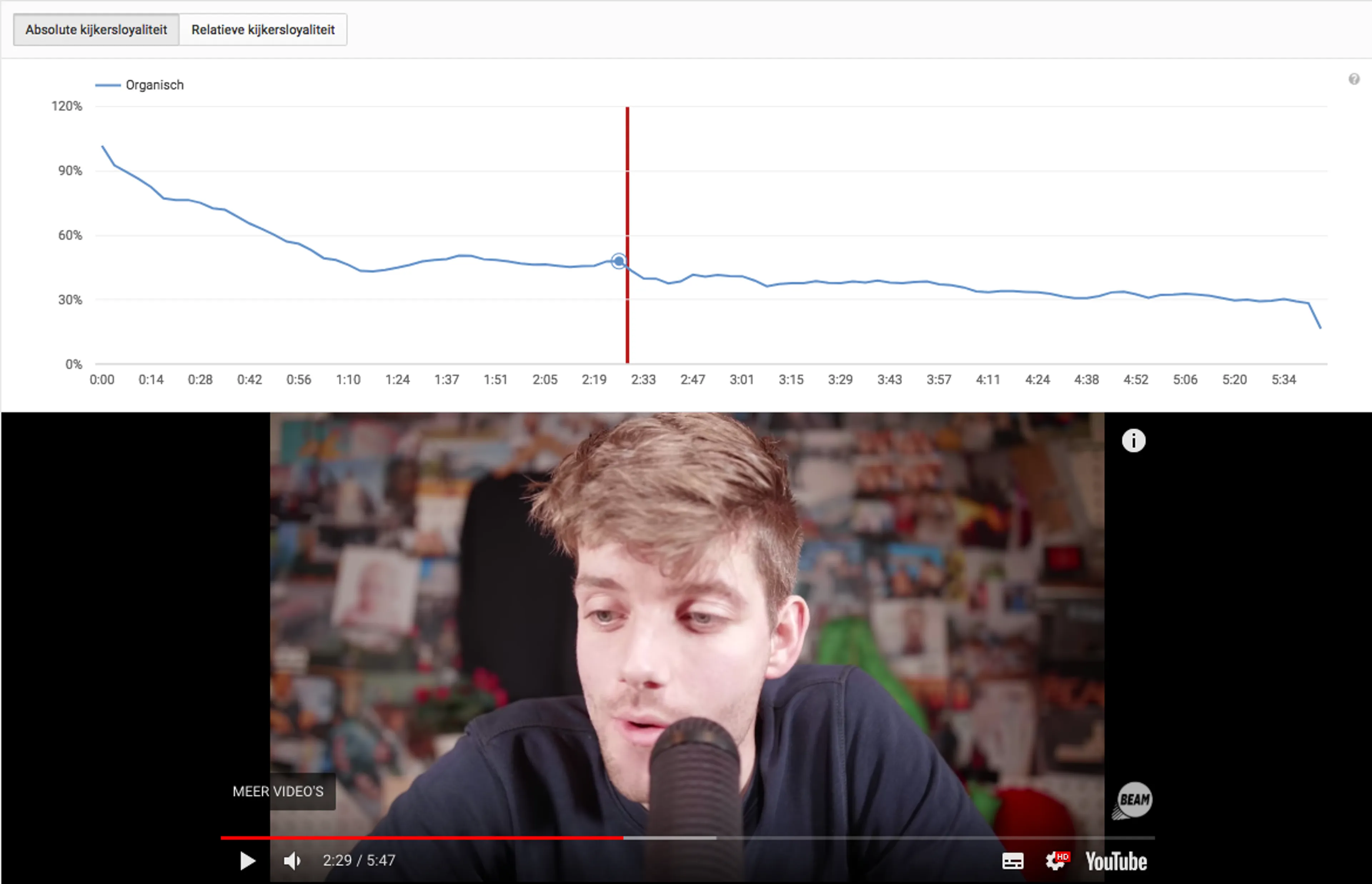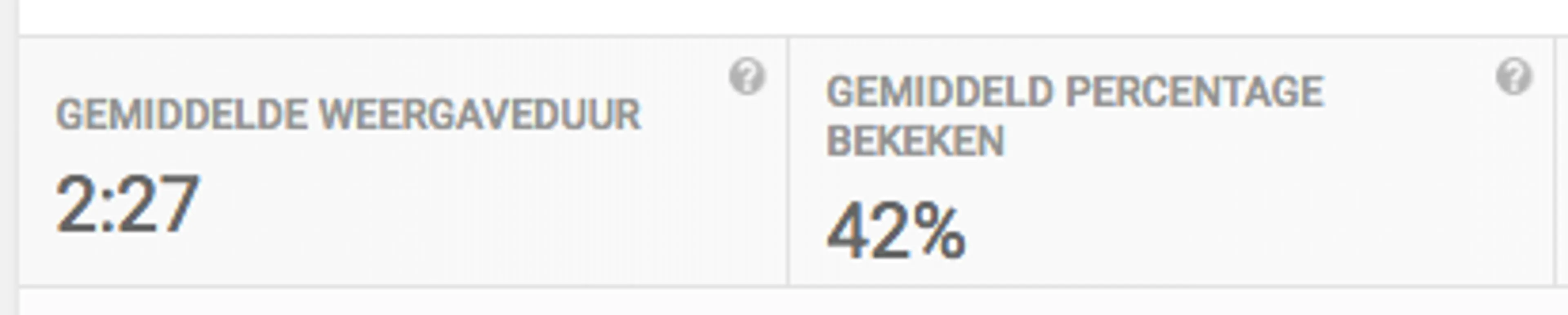 De gemiddelde kijker keek 42% van de video, dat is tot en met minuut 2.27. Op de redactie waren we blij, want dit is ruim boven gemiddeld.
