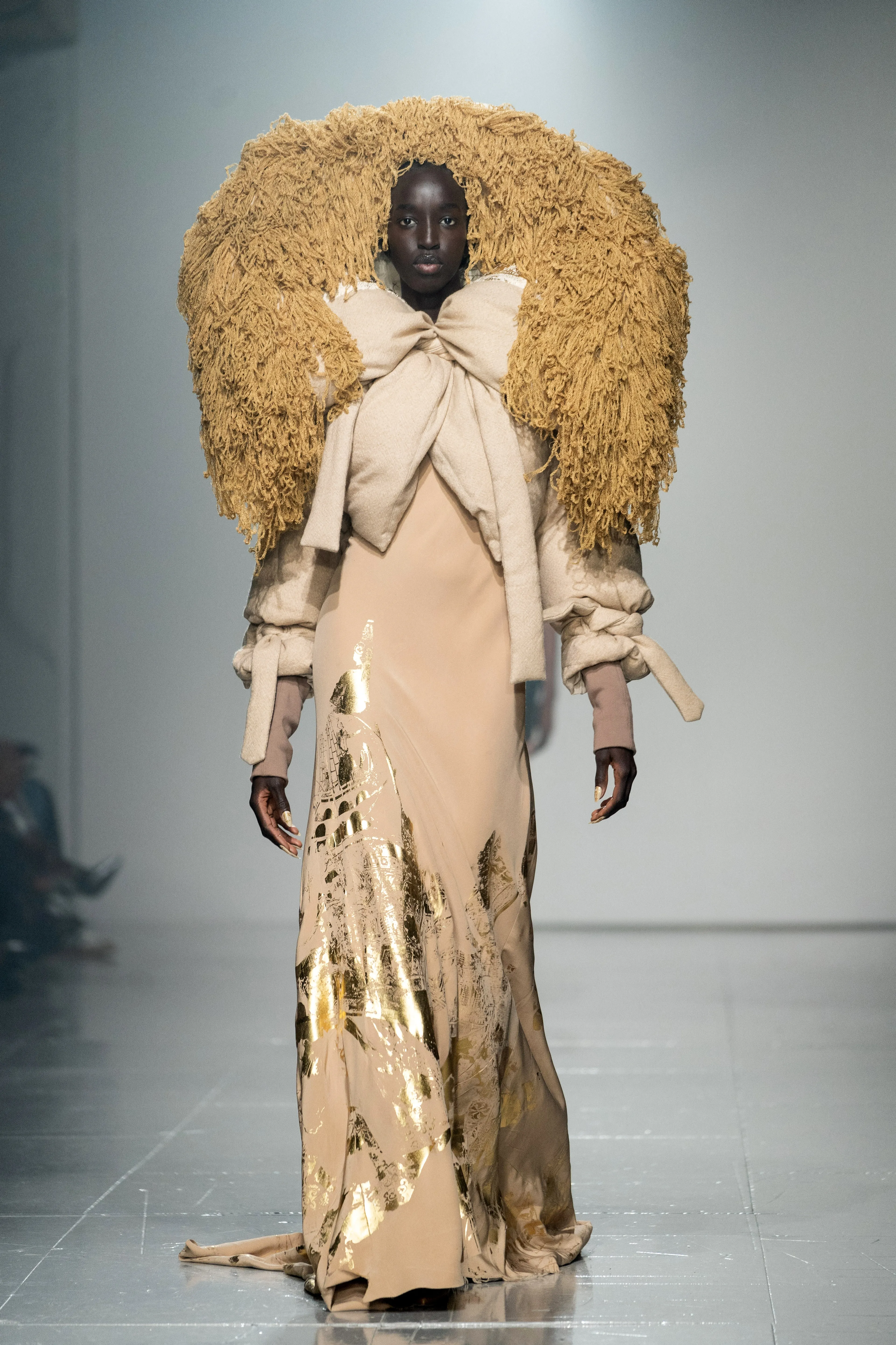 De modellen dragen hysterische jasjes